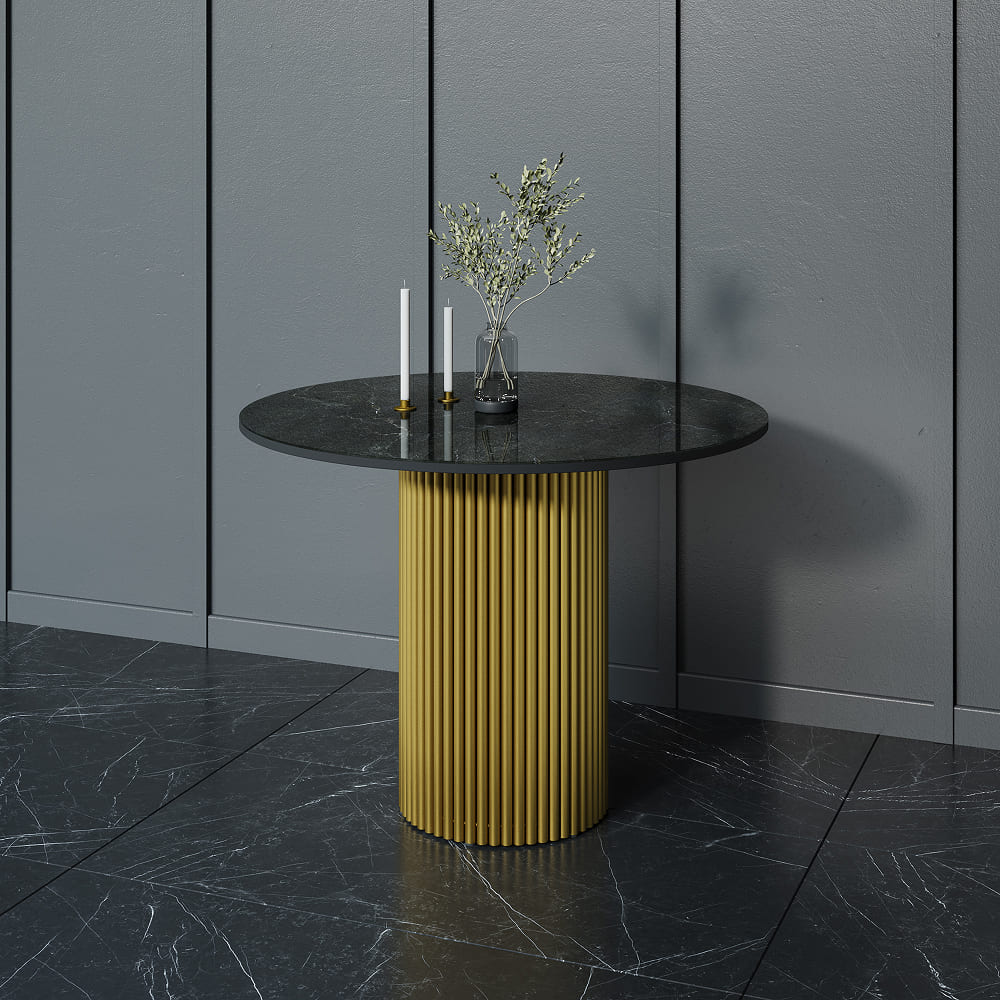 Обеденный стол TRUBIS Wood Wood + Glass L 100 темный мрамор/золотой