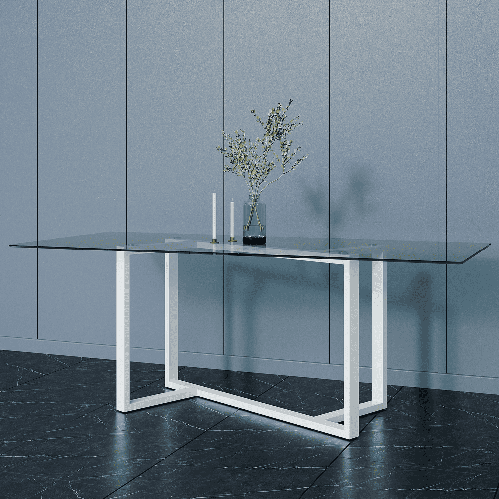 Обеденный стол VETLIX 200 х 90, бесцветное стекло/белый