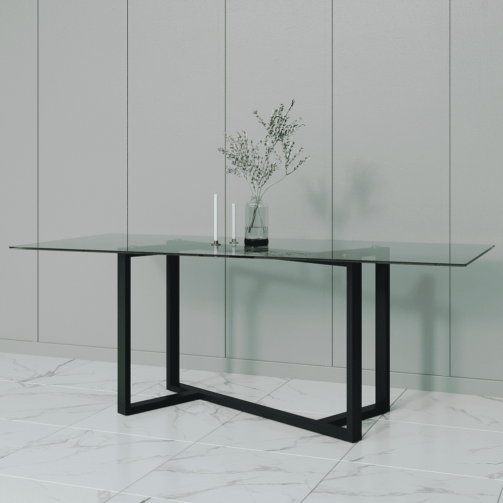 - Обеденный стол VETLIX 200 х 90, бесцветное стекло/черный