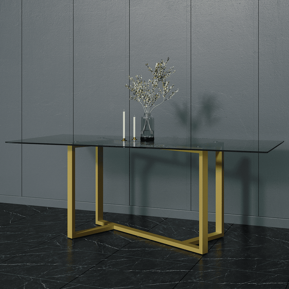 Обеденный стол VETLIX 200 х 90, бесцветное стекло/золотой