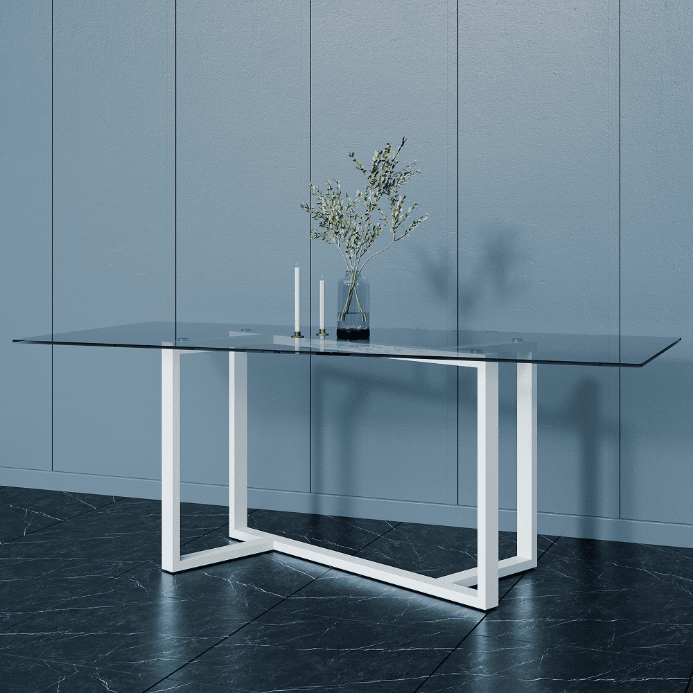 Обеденный стол VETLIX 200 х 90, осветленное стекло/белый