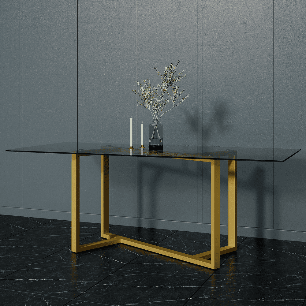 Обеденный стол VETLIX 200 х 90, осветленное стекло/золотой