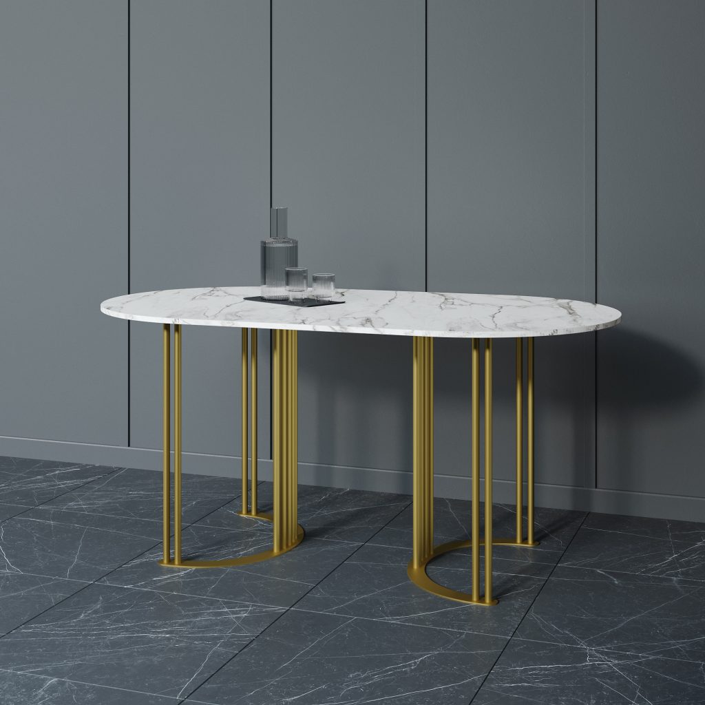 Обеденный стол VIOLUR 160 х 80 см, белый мрамор/золотой