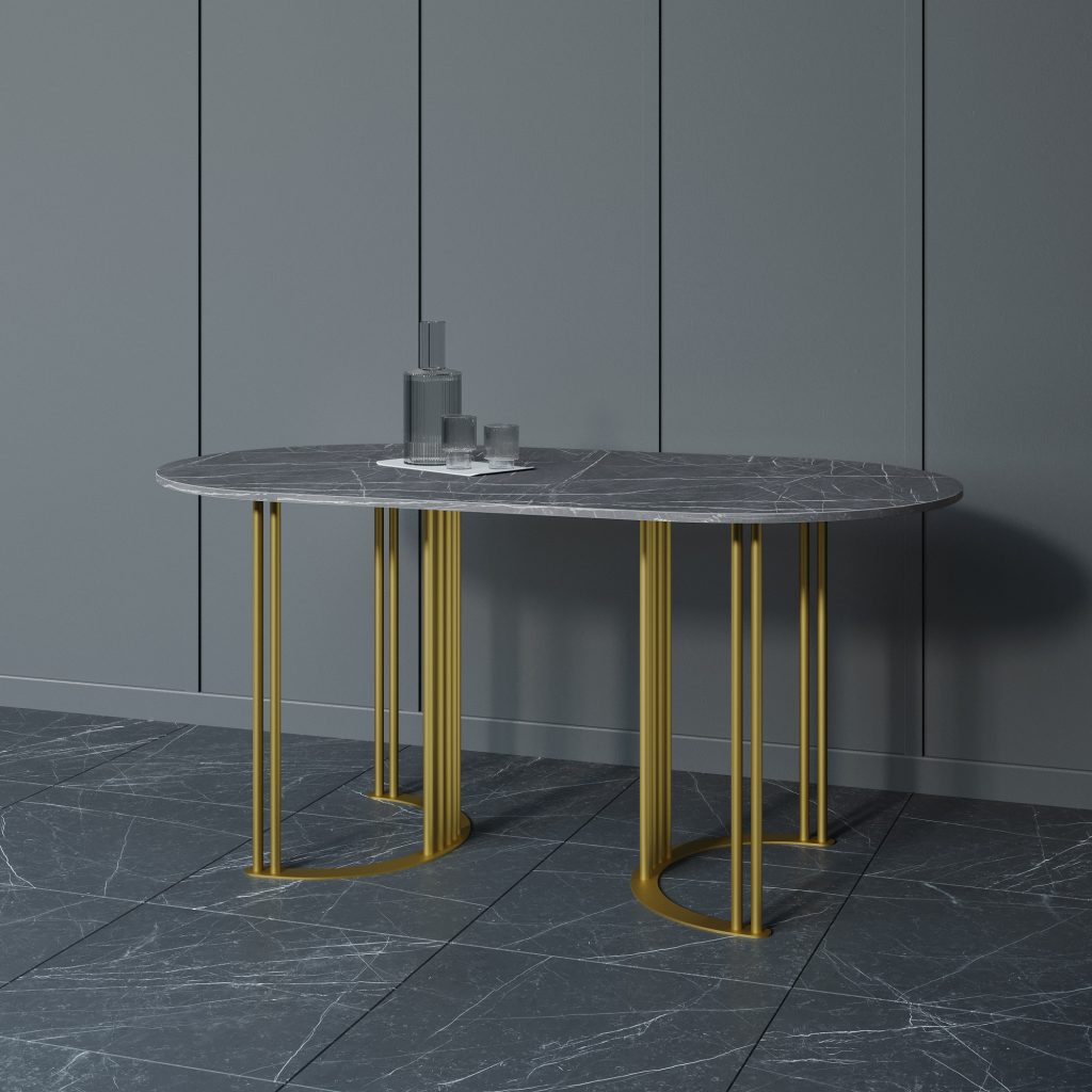 - Обеденный стол VIOLUR 160 х 80 см, темный мрамор/золотой