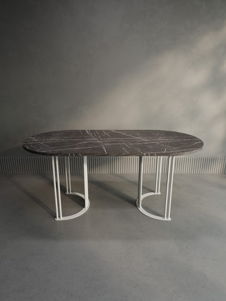 Обеденный стол VIOLUR 180 х 90 см, темный мрамор/белый