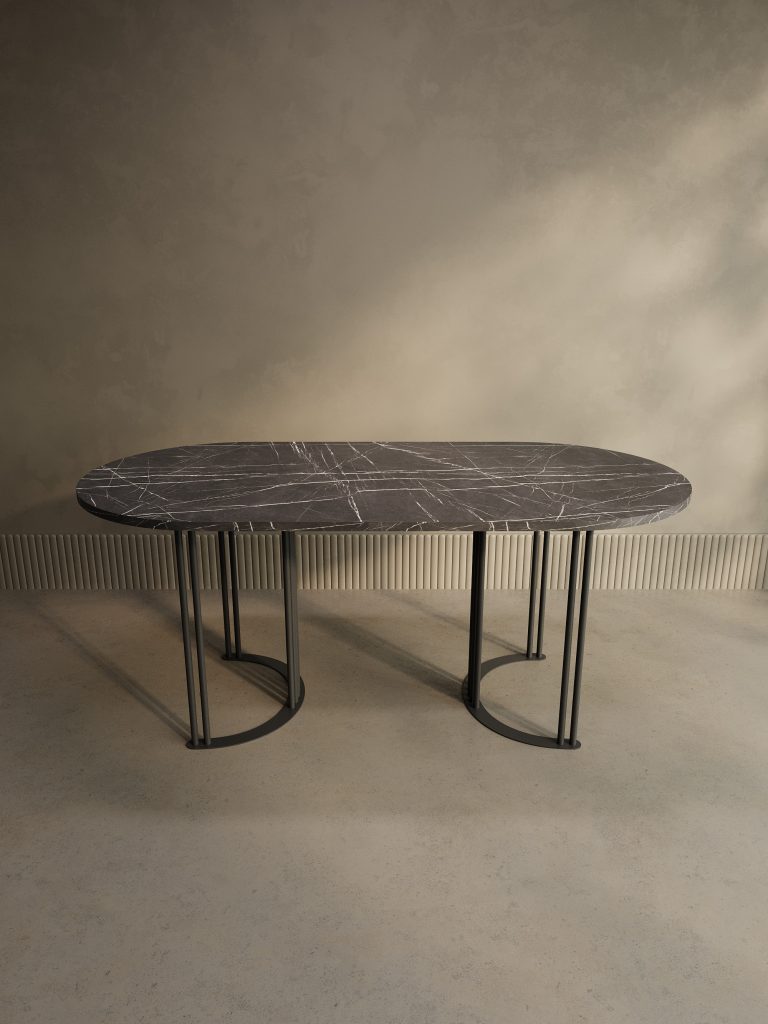 - Обеденный стол VIOLUR 180 х 90 см, темный мрамор/черный