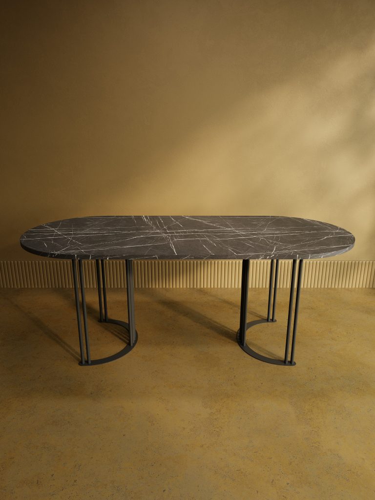 - Обеденный стол VIOLUR 200 х 90 см, темный мрамор/черный