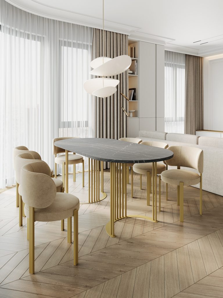 - Обеденный стол VIOLUR 200 х 90 см, темный мрамор/золотой