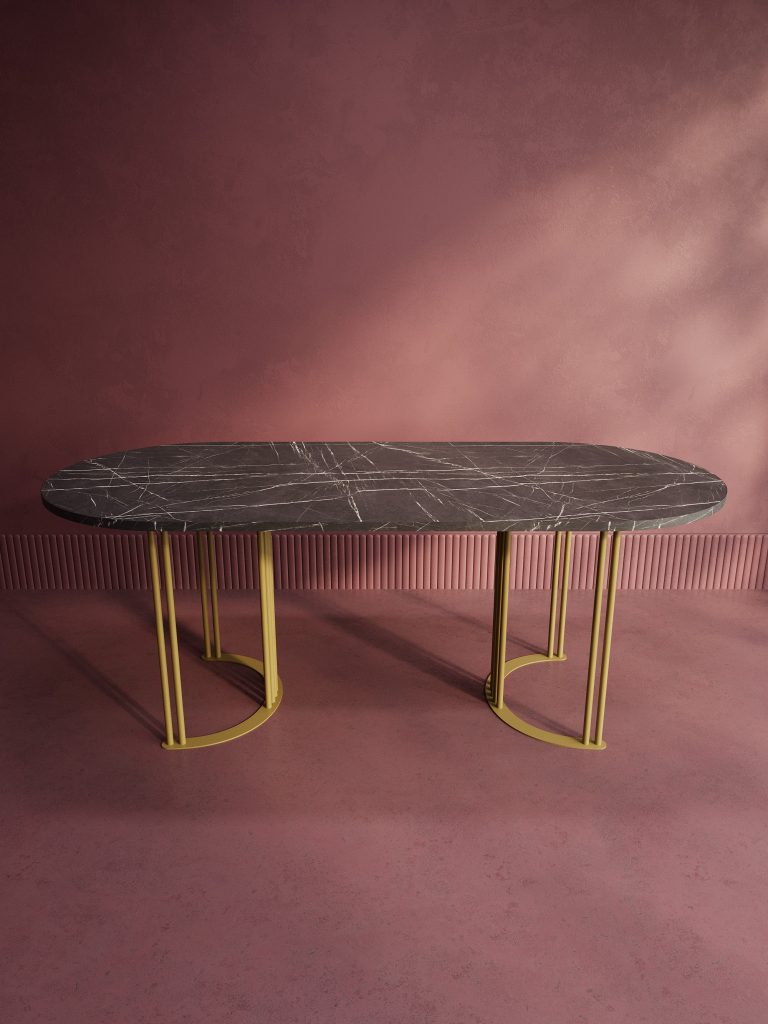 Обеденный стол VIOLUR 200 х 90 см, темный мрамор/золотой