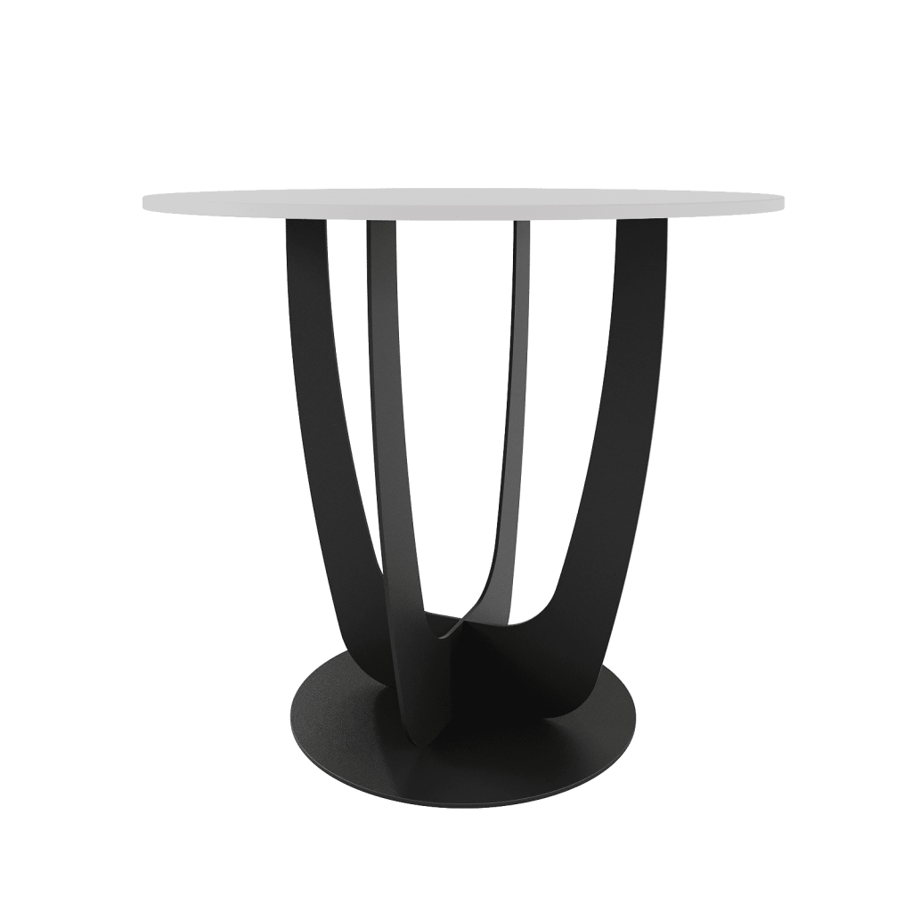Дизайнерский круглый стол с металлическим подстольем якорь. Стол YAKRIS сочетает стильный дизайн и практическую функциональность для любого интерьера. Столешница ЛДСП 1,6 см белого цвета. Стандартный вариант – матовая порошковая окраска в золотой, чёрный или белый цвет. Может использоваться как кухонный стол для вашего дома, так и переговорный круглый стол для офиса. За столом комфортно разместится 2-4 человека.