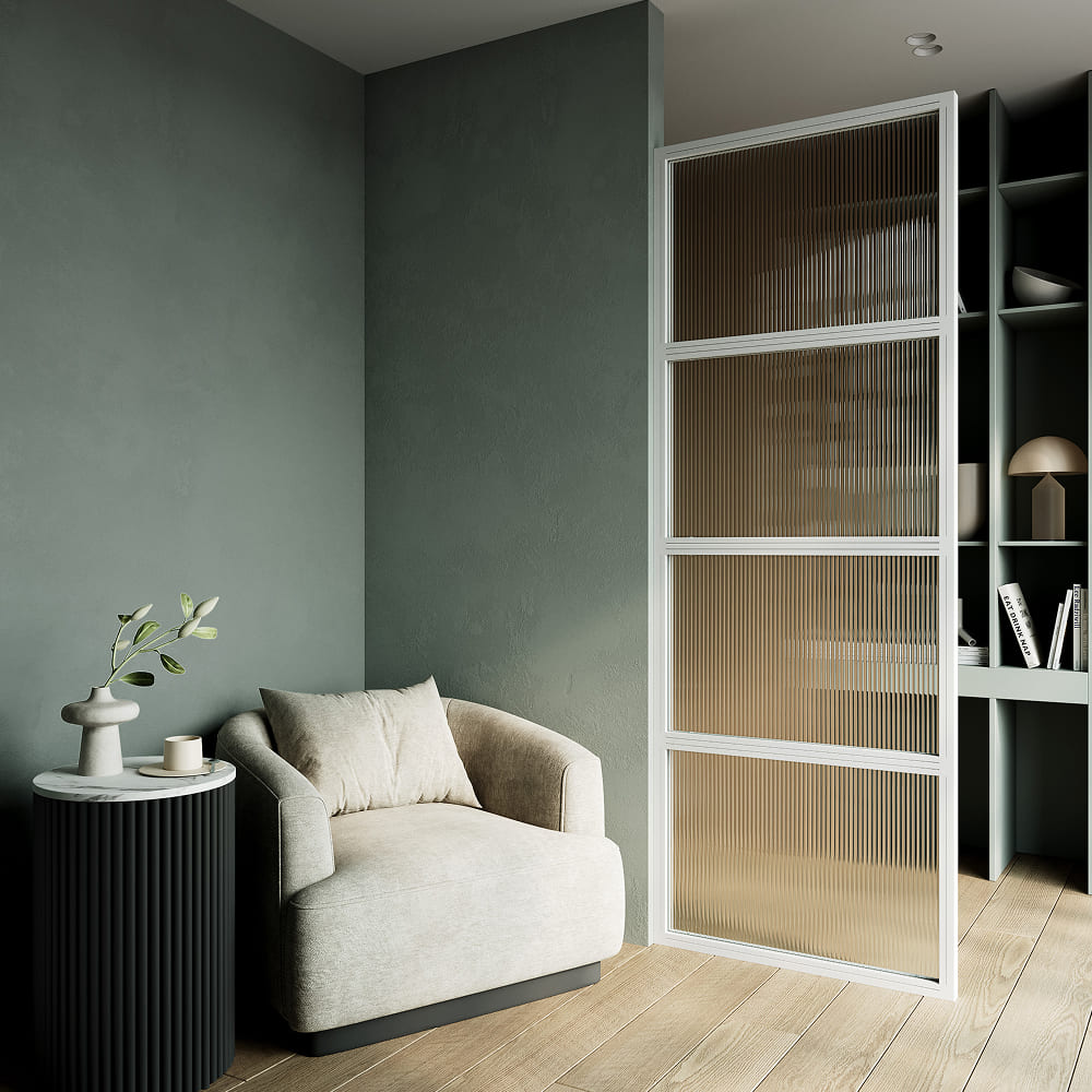 Перегородка с рифленым стеклом ZONIQUE белая, 200 х 70 см