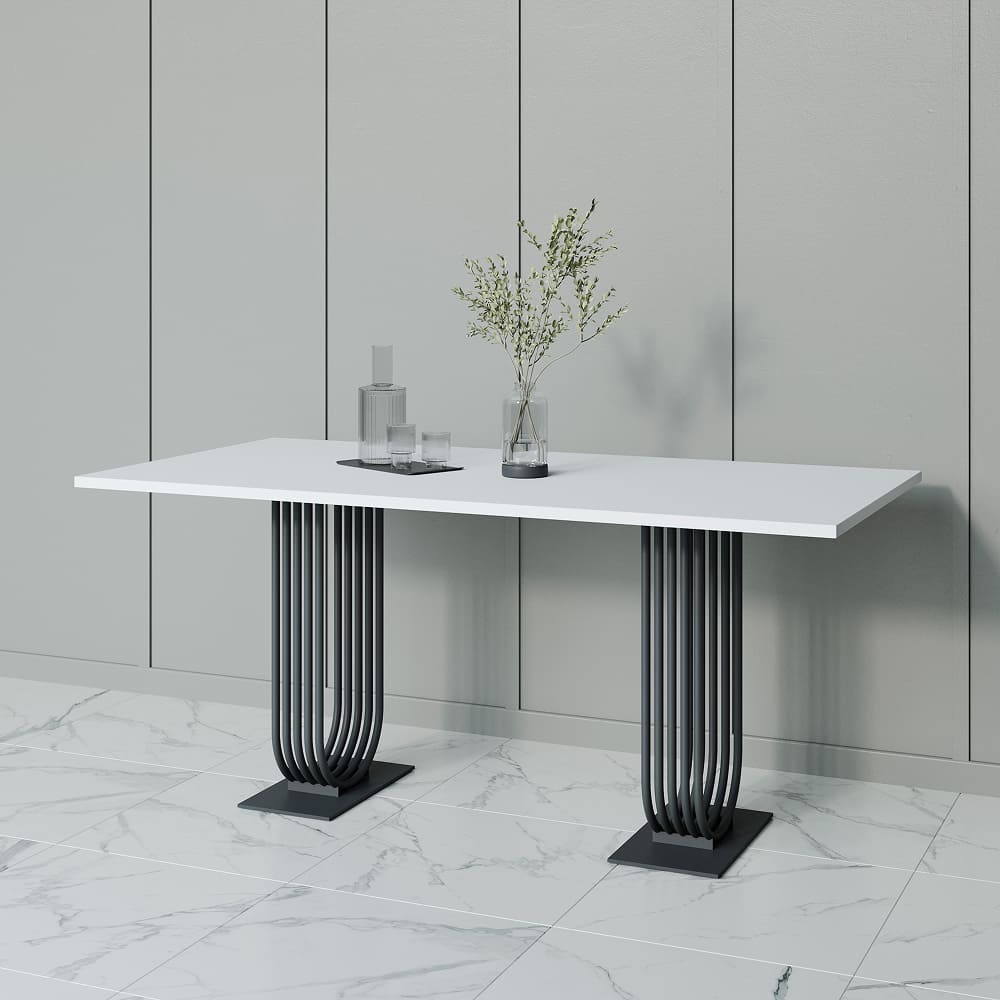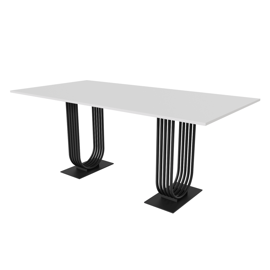 Лаконичный внешний вид прямоугольного стола серии ARFEO Duo, основанный на строгих прямых линиях, обеспечивает универсальность, позволяя органично вписаться в любой интерьер – от уютной домашней кухни до современного офисного пространства. Столешница, изготовленная из высококачественного ЛДСП толщиной 2.5 см, отличается не только прочностью и долговечностью, но и приятной на ощупь текстурой. Основа стола – прочный металлический каркас, выполненный из трубы диаметром 2 см. Такая конструкция гарантирует не только впечатляющую несущую способность, позволяющую комфортно разместить за столом от 6 до 8 человек, но и неповторимый индустриальный шарм. Обработка металла – это высококачественная матовая порошковая покраска, доступная в трех классических цветах: золотом, черном и белом. Порошковое покрытие не только обеспечивает привлекательный внешний вид, но и защищает металл от коррозии и механических повреждений, гарантируя долгий срок службы изделия.