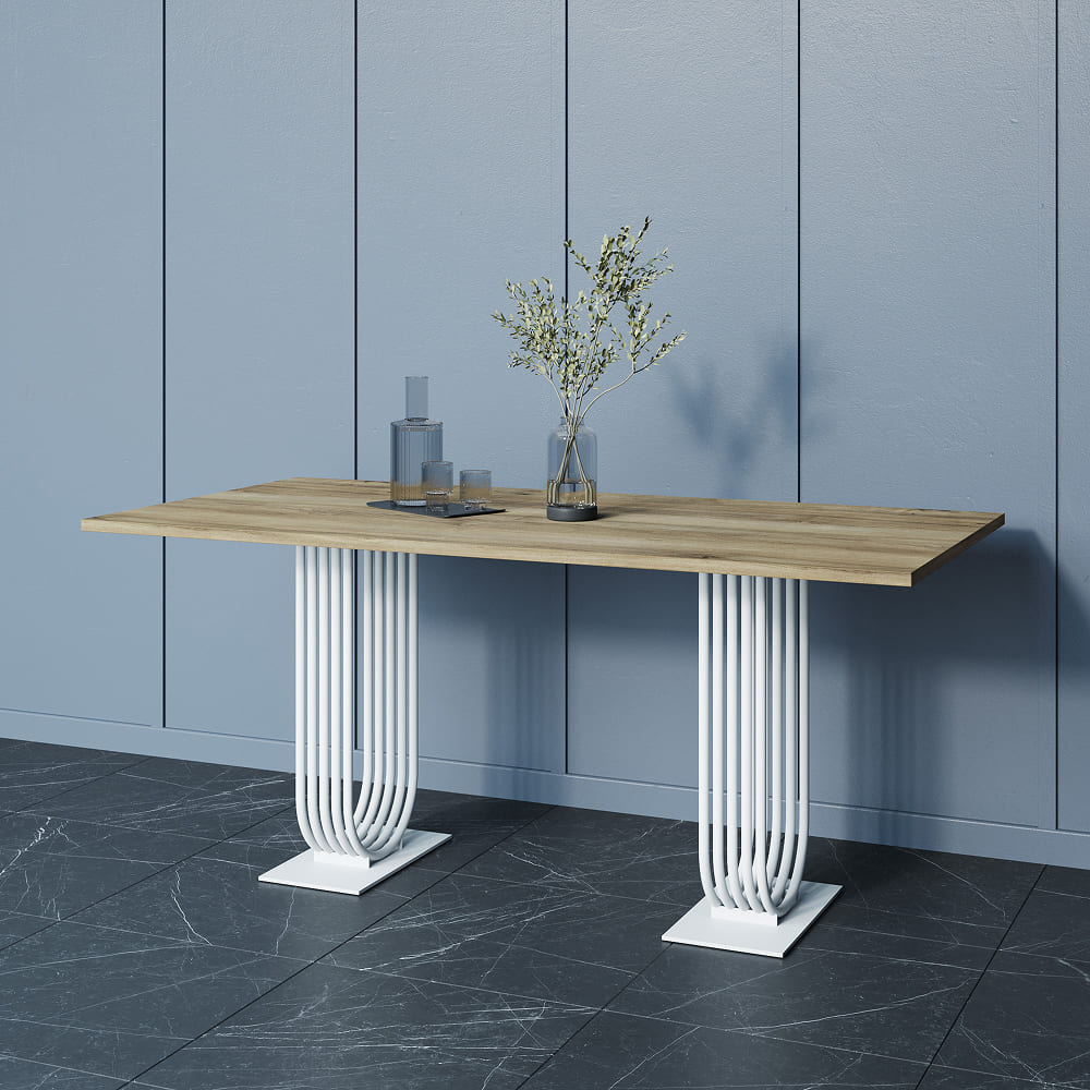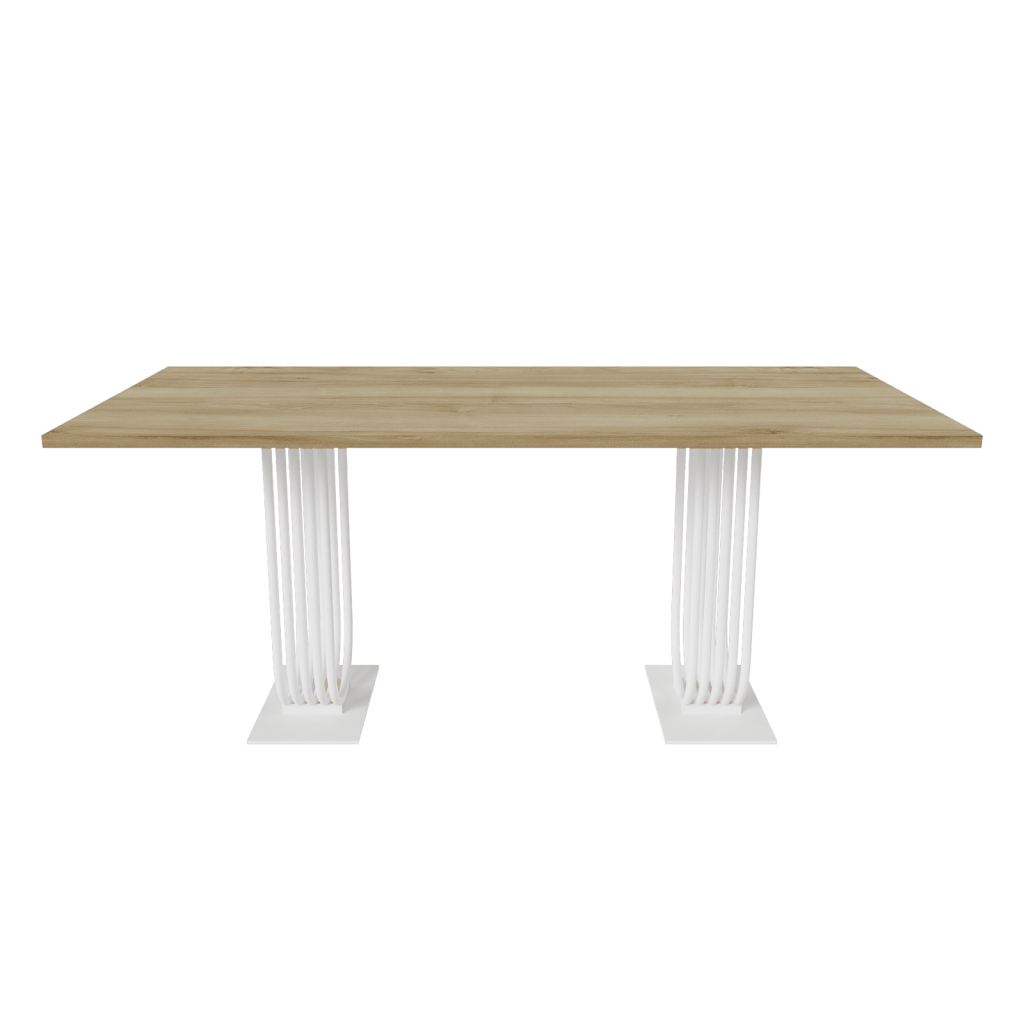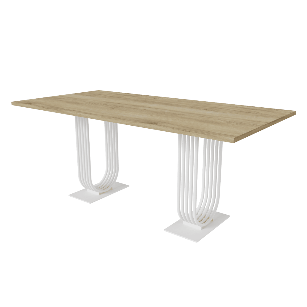 Лаконичный внешний вид прямоугольного стола серии ARFEO Duo, основанный на строгих прямых линиях, обеспечивает универсальность, позволяя органично вписаться в любой интерьер – от уютной домашней кухни до современного офисного пространства. Столешница, изготовленная из высококачественного ЛДСП толщиной 2.5 см, отличается не только прочностью и долговечностью, но и приятной на ощупь текстурой. Основа стола – прочный металлический каркас, выполненный из трубы диаметром 2 см. Такая конструкция гарантирует не только впечатляющую несущую способность, позволяющую комфортно разместить за столом от 6 до 8 человек, но и неповторимый индустриальный шарм. Обработка металла – это высококачественная матовая порошковая покраска, доступная в трех классических цветах: золотом, черном и белом. Порошковое покрытие не только обеспечивает привлекательный внешний вид, но и защищает металл от коррозии и механических повреждений, гарантируя долгий срок службы изделия.