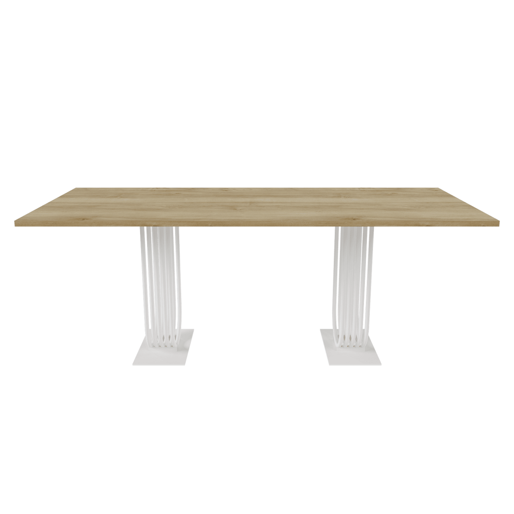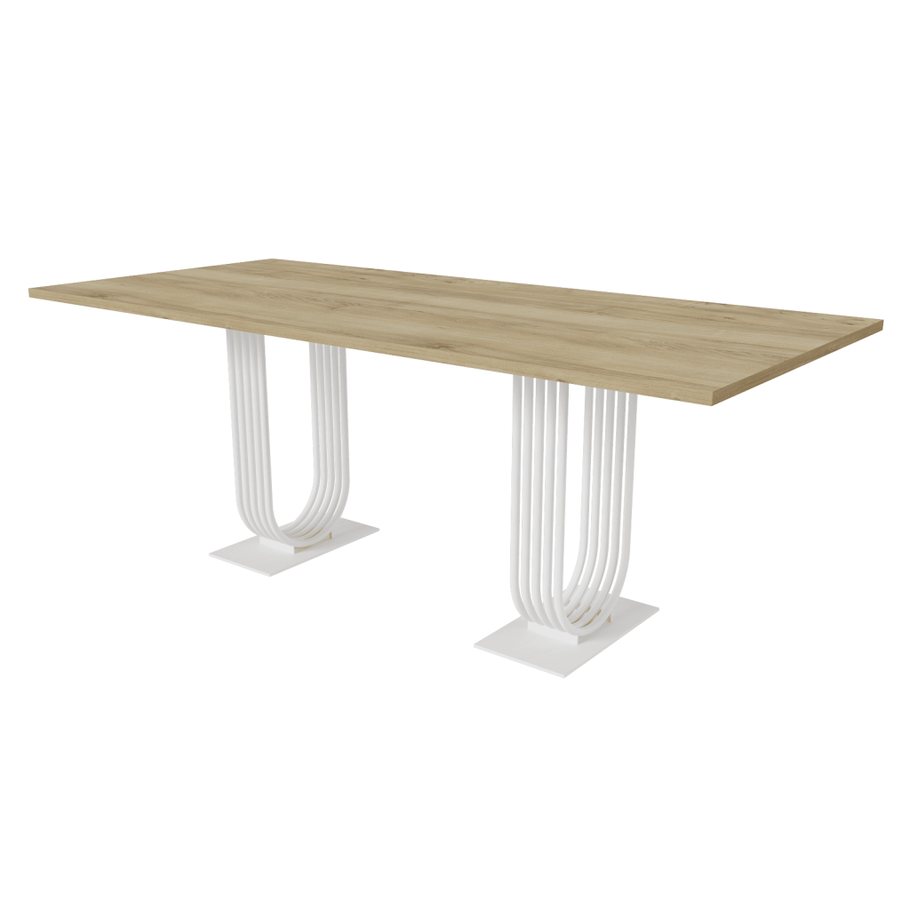 Лаконичный внешний вид прямоугольного стола серии ARFEO Duo, основанный на строгих прямых линиях, обеспечивает универсальность, позволяя органично вписаться в любой интерьер – от уютной домашней кухни до современного офисного пространства. Столешница, изготовленная из высококачественного ЛДСП толщиной 2.5 см, отличается не только прочностью и долговечностью, но и приятной на ощупь текстурой. Основа стола – прочный металлический каркас, выполненный из трубы диаметром 2 см. Такая конструкция гарантирует не только впечатляющую несущую способность, позволяющую комфортно разместить за столом от 6 до 8 человек, но и неповторимый индустриальный шарм. Обработка металла – это высококачественная матовая порошковая покраска, доступная в трех классических цветах: золотом, черном и белом. Порошковое покрытие не только обеспечивает привлекательный внешний вид, но и защищает металл от коррозии и механических повреждений, гарантируя долгий срок службы изделия.