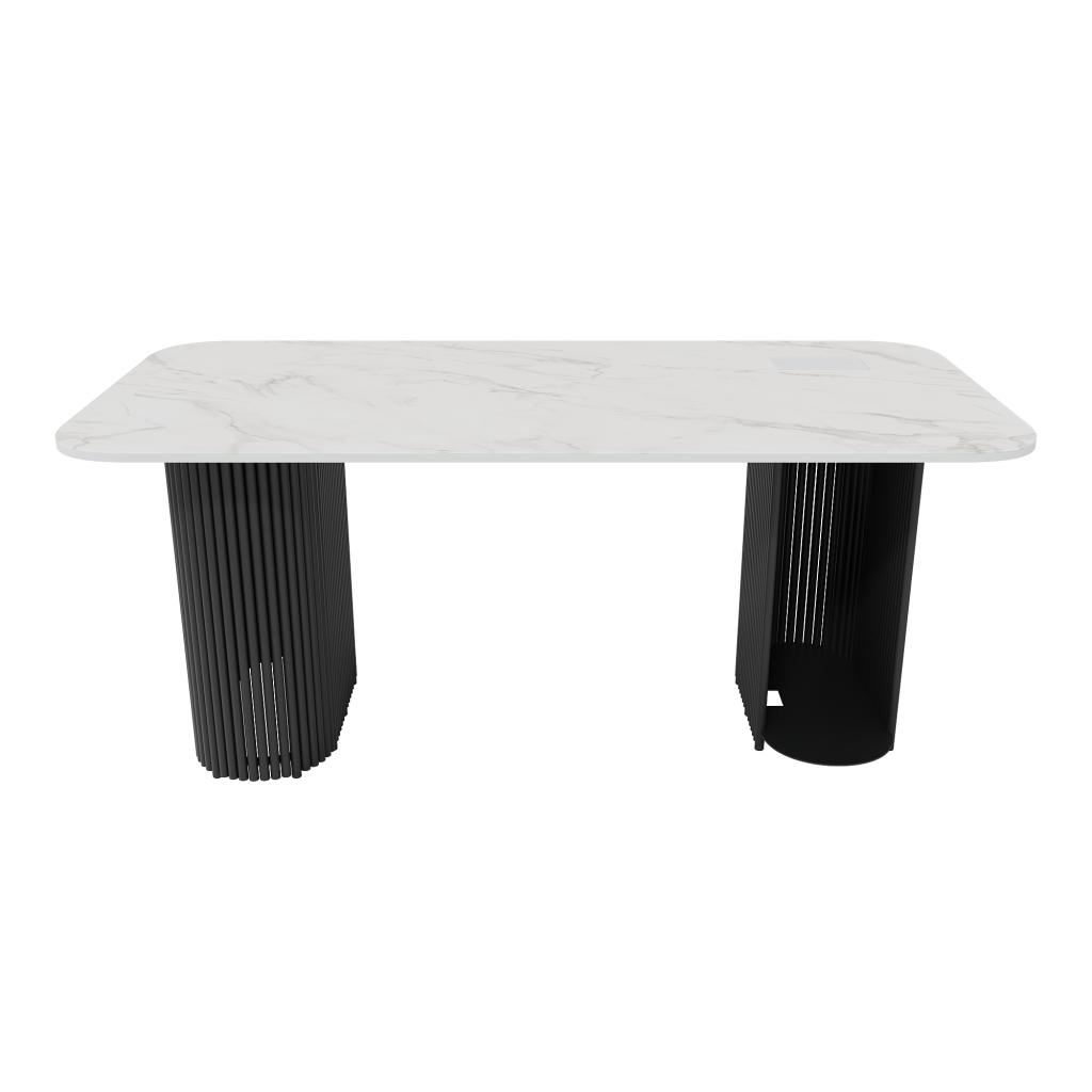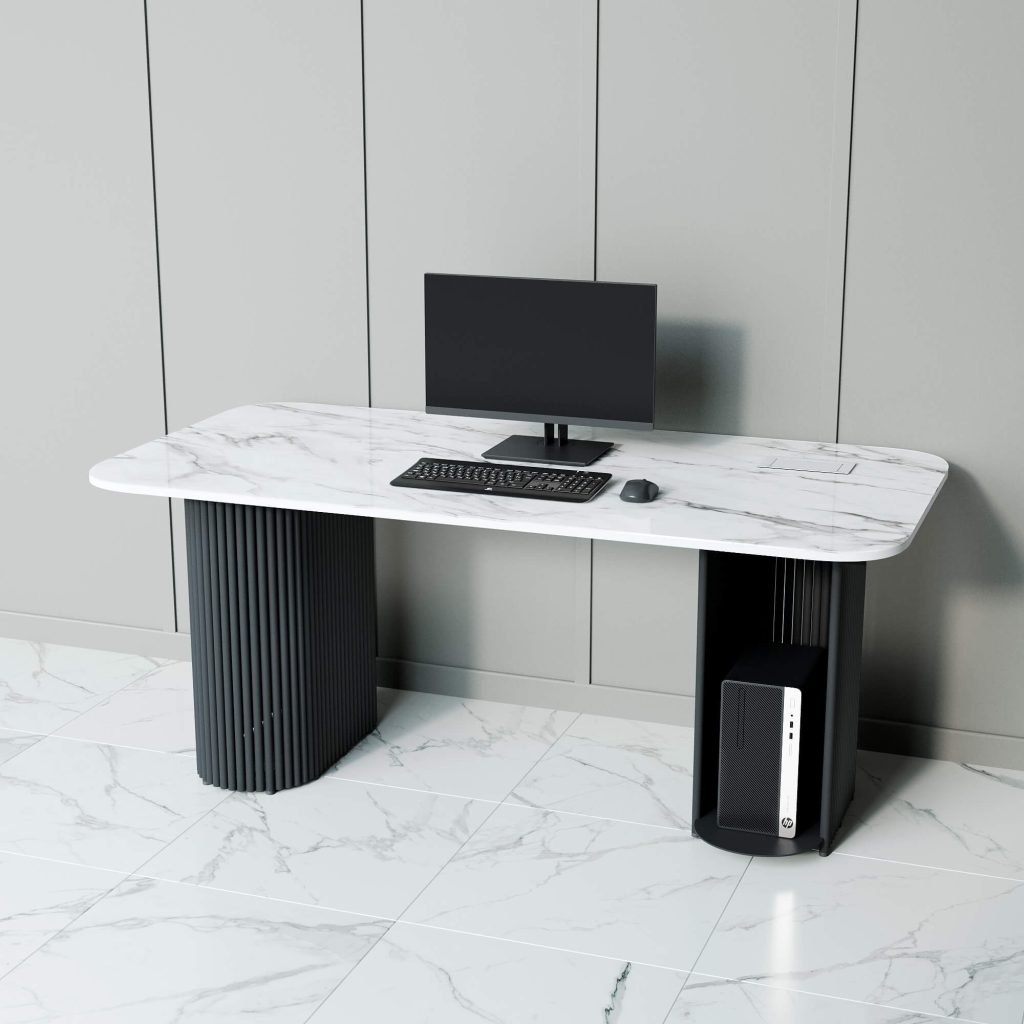 Рабочий стол TRUBIS Wood + Glass белый мрамор/черный, 180 х 90 см r150