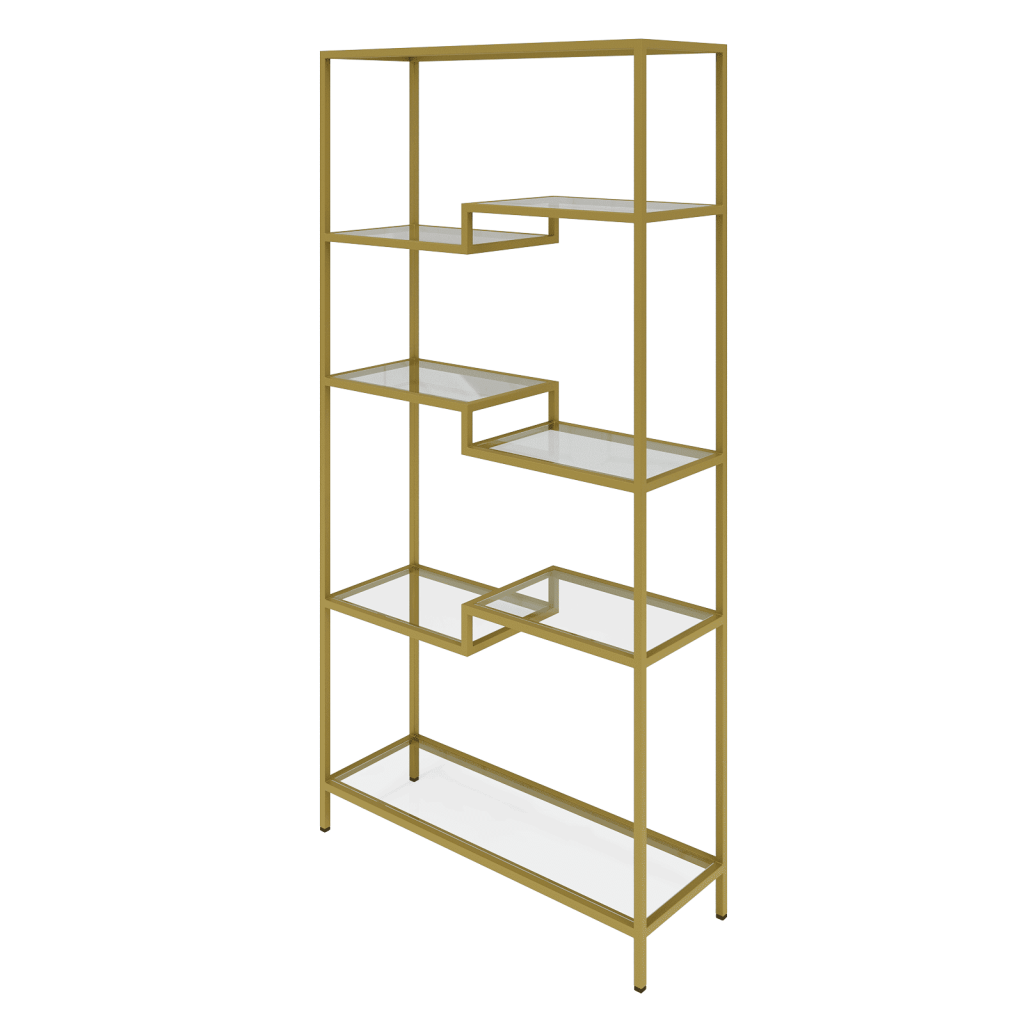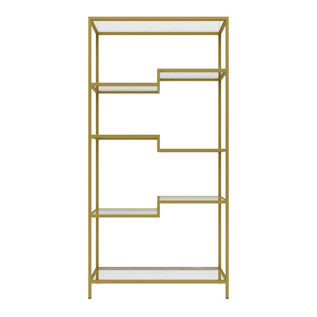 Металлический каркас имеет дизайнерскую форму и отлично подходит для расположения абсолютно любых предметов интерьера, например – растения, книги, декор или различны аксессуары. Стеклянные полки добавляют лёгкости, позволяя разместить стеллаж в любом интерьере.