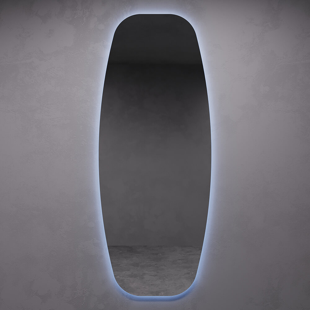 Фигурное безрамное зеркало FALENSO NF LED — стильный декоративный элемент. Светодиодная лента по периметру создает мягкий, холодный свет для расслабляющей атмосферы. Подложка изготовлена из МДФ с матовым светорассеивателем, защищающим подсветку от пыли и влаги, что увеличивает долговечность. Оснащено выводом на 220В для подключения к сети, управление — через выключатель на стене или розетку.