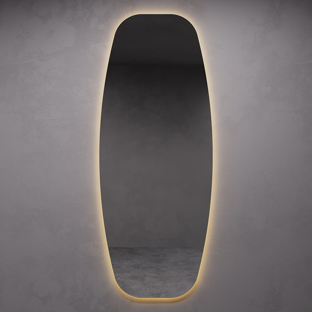 Фигурное безрамное зеркало FALENSO NF LED — стильный декоративный элемент. Светодиодная лента по периметру создает мягкий, тёплый свет для расслабляющей атмосферы. Подложка изготовлена из МДФ с матовым светорассеивателем, защищающим подсветку от пыли и влаги, что увеличивает долговечность. Оснащено выводом на 220В для подключения к сети, управление — через выключатель на стене или розетку.