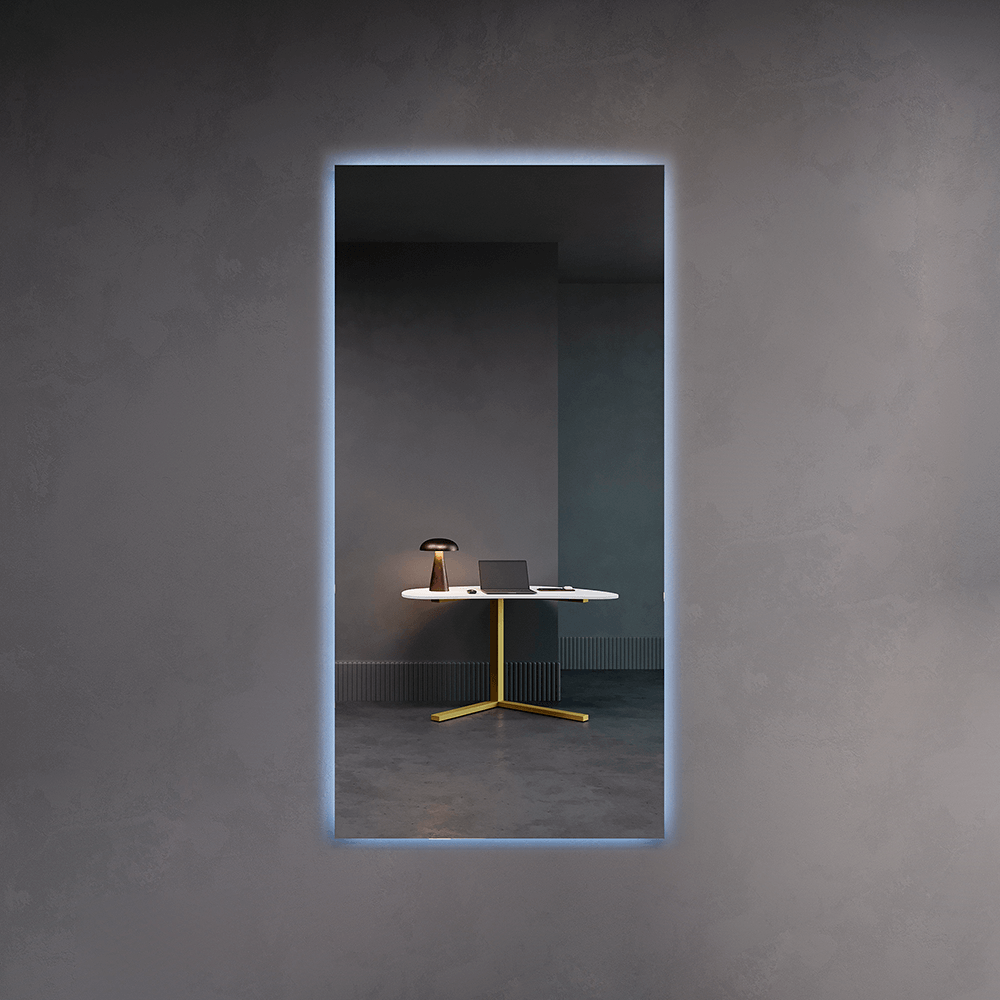 HALFEO NF LED XL — это безрамное зеркало прямоугольной формы с контурной (тыльной) холодной подсветкой, созданное с применением передовых технологий. Это современное зеркало обладает не только изысканным дизайном, но и функциональностью, которая сделает вашу жизнь более комфортной. Есть вывод 220W для подключения к сети (блок питания подсветки 12V), включение подсветки через провод от розетки. Возможно установить сенсорную кнопку на заказ в любом месте зеркала за дополнительную стоимость.