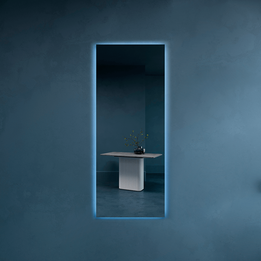 HALFEO NF LED XL Slim— это безрамное зеркало прямоугольной формы с контурной (тыльной) холодной подсветкой. Это современное зеркало обладает не только изысканным дизайном, но и функциональностью, которая сделает вашу жизнь более комфортной. Есть вывод 220W для подключения к сети (блок питания подсветки 12V), включение подсветки через провод от розетки. Возможно установить сенсорную кнопку на заказ в любом месте зеркала за дополнительную стоимость.
