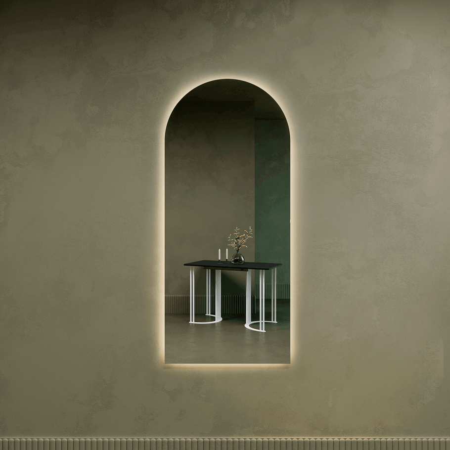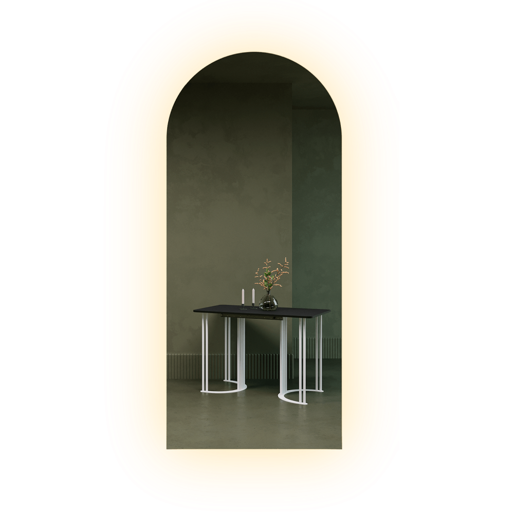 - Размер: Зеркало имеет высоту 179 см и ширину 79 см, что создает эффектную арочную форму. Его изысканные пропорции и форма арки придадут элегантности и гармонии вашему пространству.