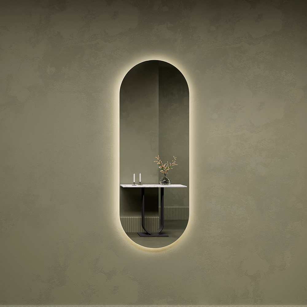Наше безрамное зеркало овальной (капсульной) формы с контурной (тыльной) нейтральной подсветкой, станет ярким акцентом в вашем интерьере. Каждое зеркало создано с вниманием к деталям, чтобы обеспечить высочайшее качество и эстетическую привлекательность.