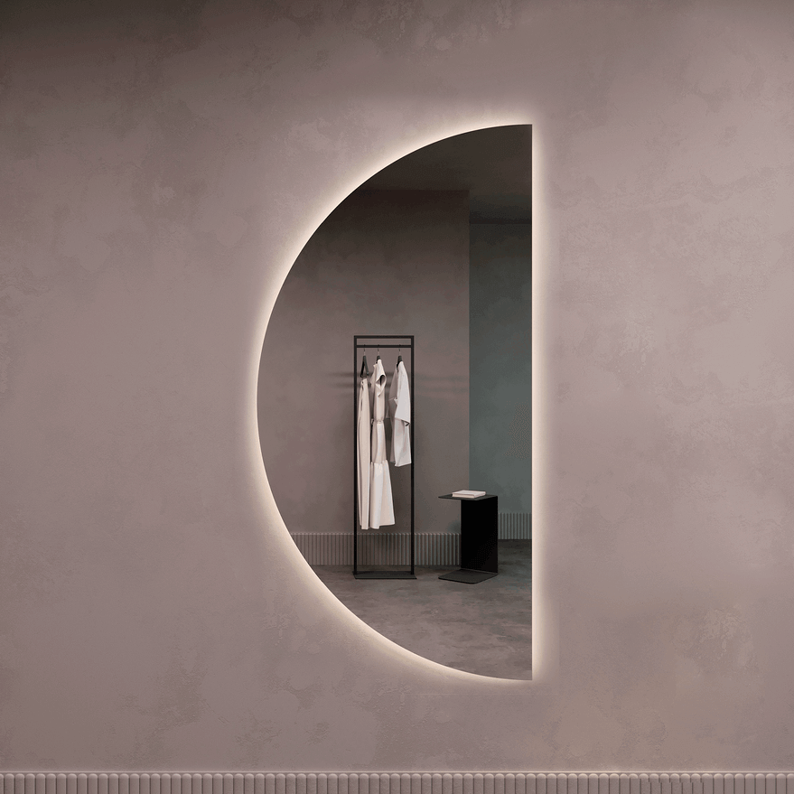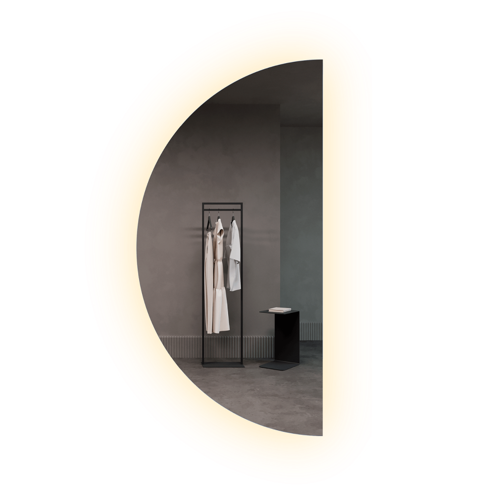 RONTUS NF LED XL – это уникальное безрамное зеркало в форме полукруга с контурной нейтральной подсветкой, созданное с применением передовых технологий. Оно обладает изысканным дизайном и функциональностью, которые подчеркнут уникальность вашего интерьера и придадут ему особый шарм.
