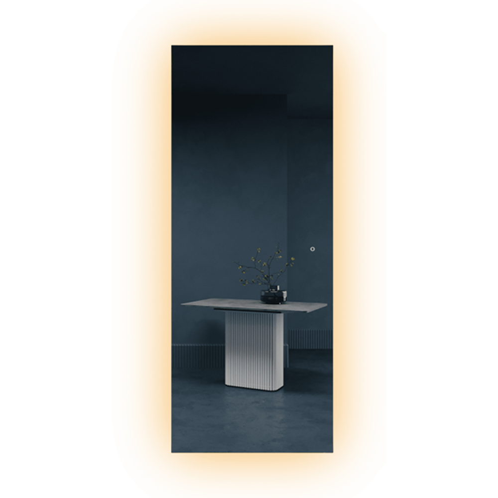 HALFEO NF LED XL Slim— это безрамное зеркало прямоугольной формы с контурной (тыльной) подсветкой 3 в 1. Это современное зеркало обладает не только изысканным дизайном, но и функциональностью, которая сделает вашу жизнь более комфортной. Есть вывод 220W для подключения к сети (блок питания подсветки 12V), включение подсветки через провод от розетки. Возможно установить сенсорную кнопку на заказ в любом месте зеркала за дополнительную стоимость.
