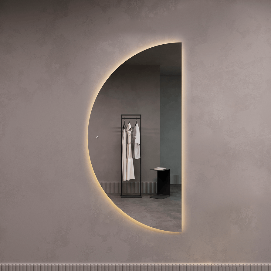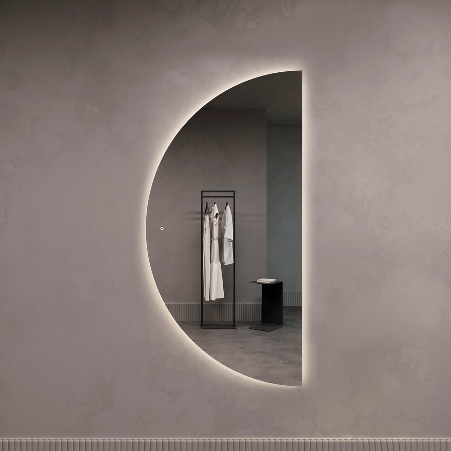 RONTUS NF LED XL – это уникальное безрамное зеркало в форме полукруга с контурной подсветкой 3 в 1, созданное с применением передовых технологий. Оно обладает изысканным дизайном и функциональностью, которые подчеркнут уникальность вашего интерьера и придадут ему особый шарм.
