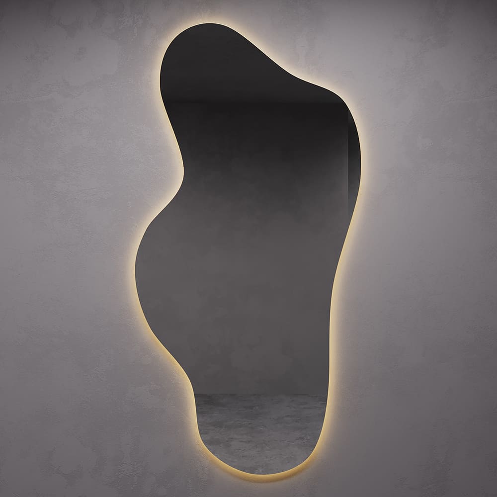 Фигурное безрамное зеркало SKYSO 2 NF LED — стильный декоративный элемент. Светодиодная лента по периметру создает мягкий, тёплый свет для расслабляющей атмосферы. Подложка изготовлена из МДФ с матовым светорассеивателем, защищающим подсветку от пыли и влаги, что увеличивает долговечность. Оснащено выводом на 220В для подключения к сети, управление — через выключатель на стене или розетку.