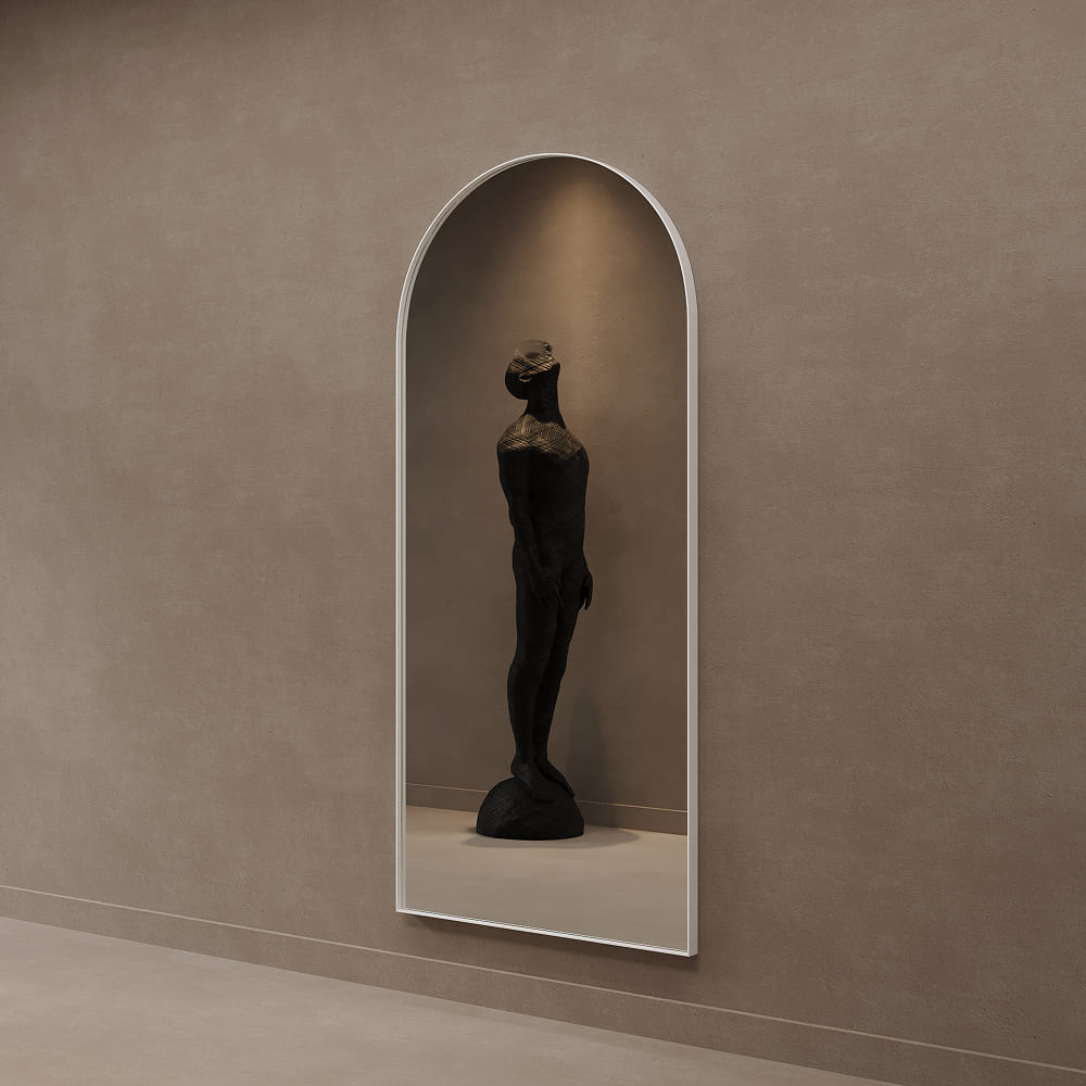 ARKIS может быть установлено как настенным, так и напольным зеркалом в арочной форме. Вы можете выбрать вариант рамы: тонкая рама 0.4*4 см с выступом рамы перед зеркалом или заказать толстую раму 2*2 см. Оба варианта отличаются высоким качеством изготовления и стильным дизайном.