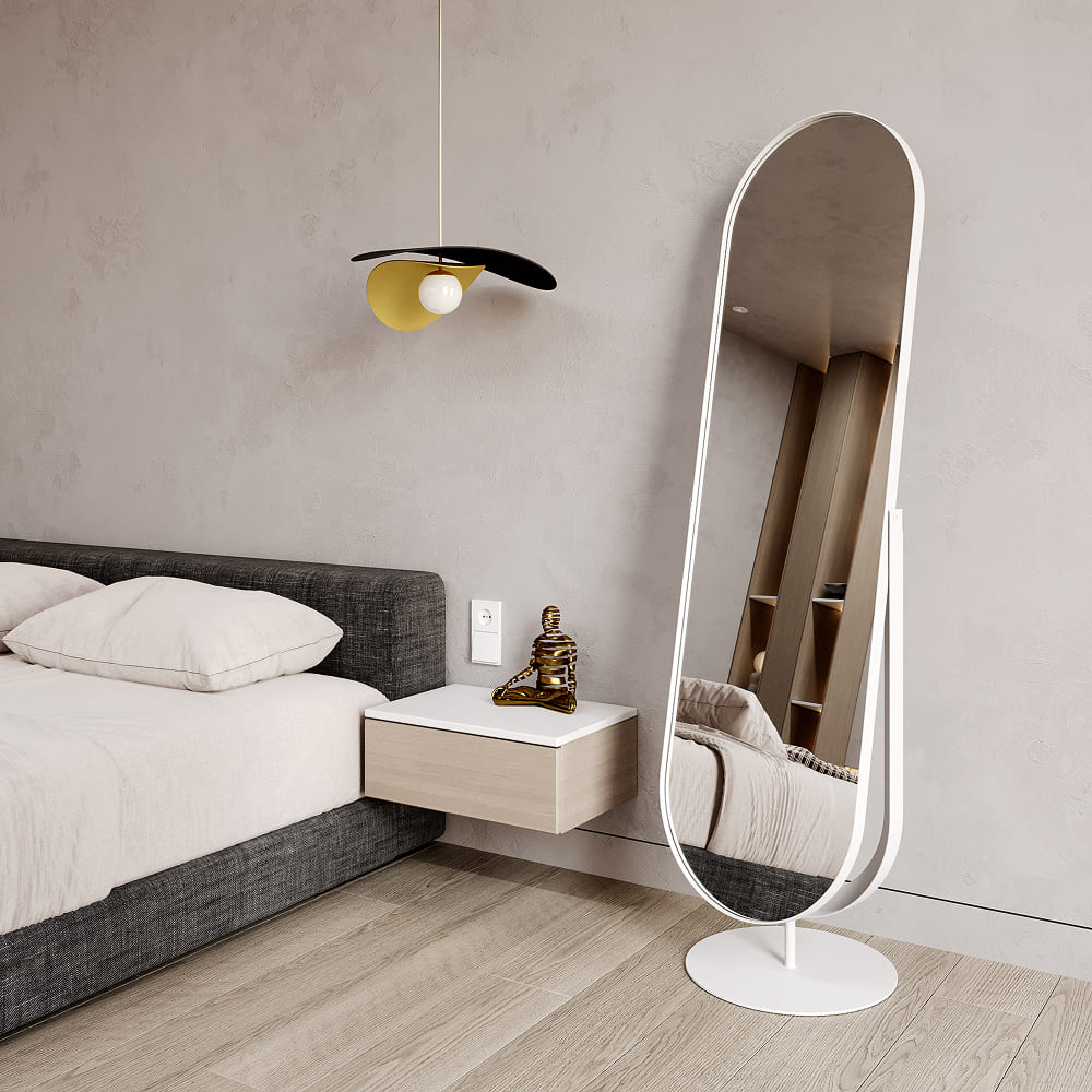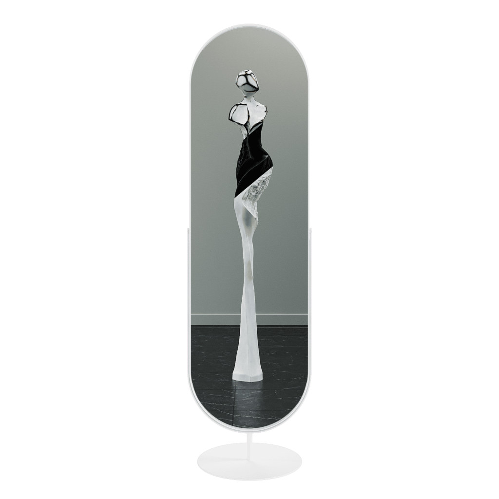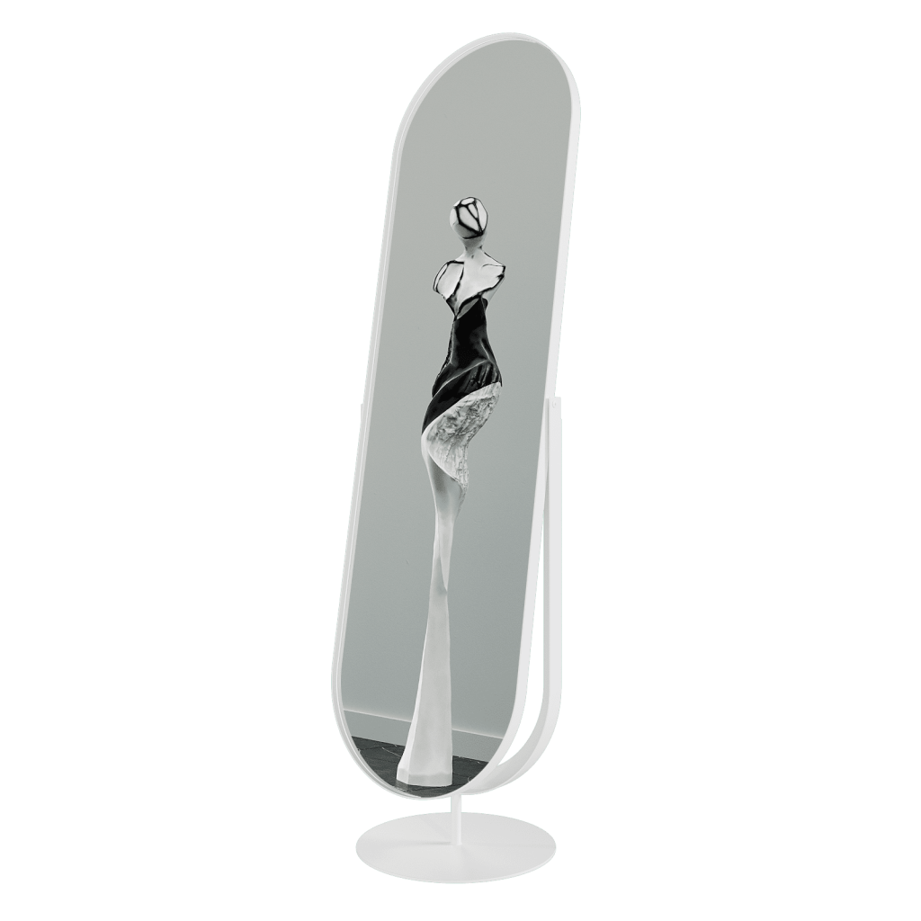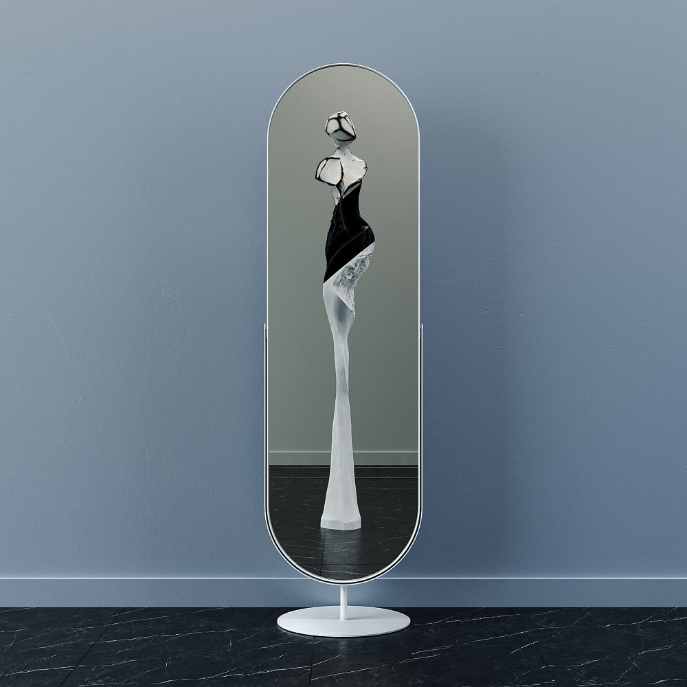Зеркало в раме овальной формы OZEVIS – это воплощение элегантности и функциональности. Это поворотное зеркало в пол в дизайнерской металлической раме, выполненной вручную. Габаритные размеры зеркала составляют 165 х 46 см.