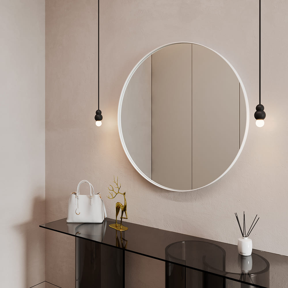 - Зеркало в белой раме RAUNTEL L, 101 х 101 см