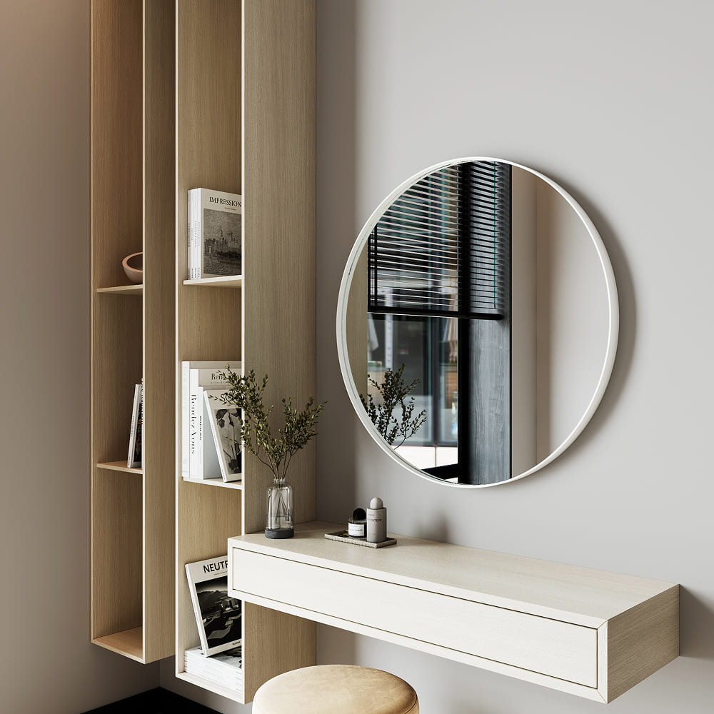 Круглое зеркало RAUNTEL M в тонкой металлической раме ручной работы – изящное и стильное решение для вашего интерьера. Рама имеет элегантный выступ 1,5 см перед зеркалом, создавая привлекательный эффект углубления. Габаритный диаметр зеркала составляет 80 см.