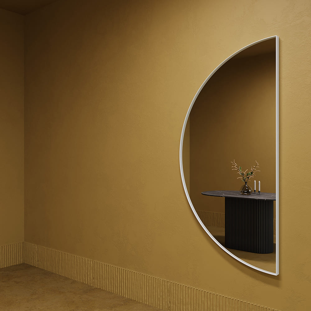 RONTUS M – это уникальное зеркало в форме полукруга с металлической рамой, которое отличается не только стильным дизайном, но и своей практичностью. Тонкая металлическая рама придаёт зеркалу неповторимый шарм и делает его настоящим украшением любого интерьера.