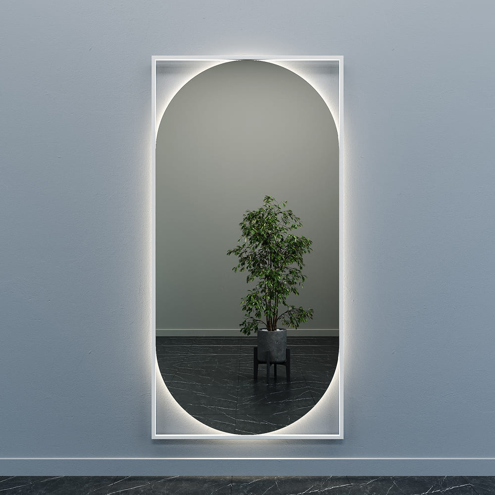 - Зеркало в белой раме с нейтральной подсветкой, KVADEN XL LED, 200 х 100 см