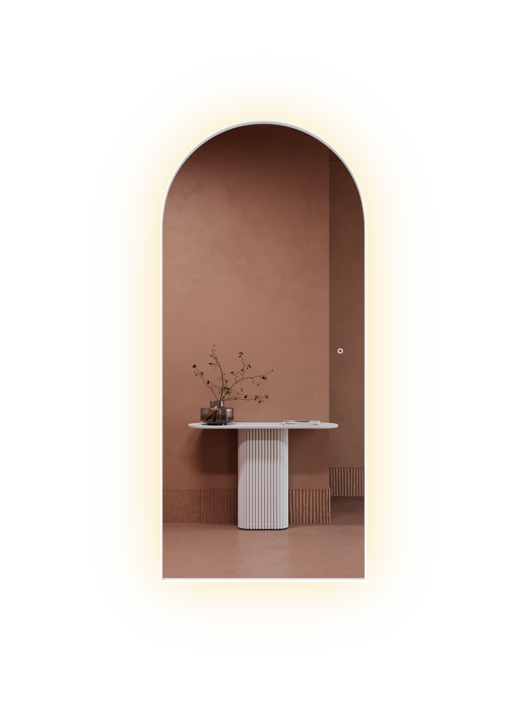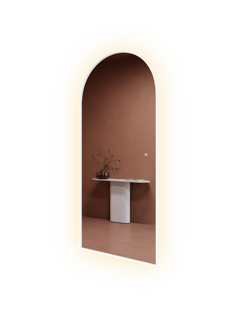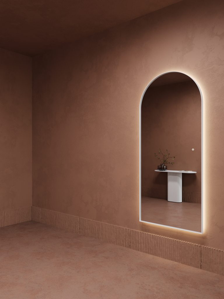 Арочное настенное зеркало в металлической раме с подсветкой 3 в 1, ARKIS L LED с сенсорной кнопкой. Среди зеркал в полный рост представленная модель в виде арки пользуется особой популярностью. Толщина зеркального полотна 0.4 см. Сечение профиля рамы 0.4*4 см, тонкая рама. Выступ рамы 1.5 см. Матовая порошковая покраска. На тыльной стороне рамы присутствует металлическая полоса с крепежными элементами. Cветодиодная лента защищена матовым свето-рассеивателем от попадания пыли и влаги и закреплена на полосе из металла. Подсветка 3 в 1 позволяет регулировать температуру и яркость света. Меняйте цвет одним касанием, а яркость — удержанием кнопки. Все выбранные вами настройки зеркало сохранит автоматически.