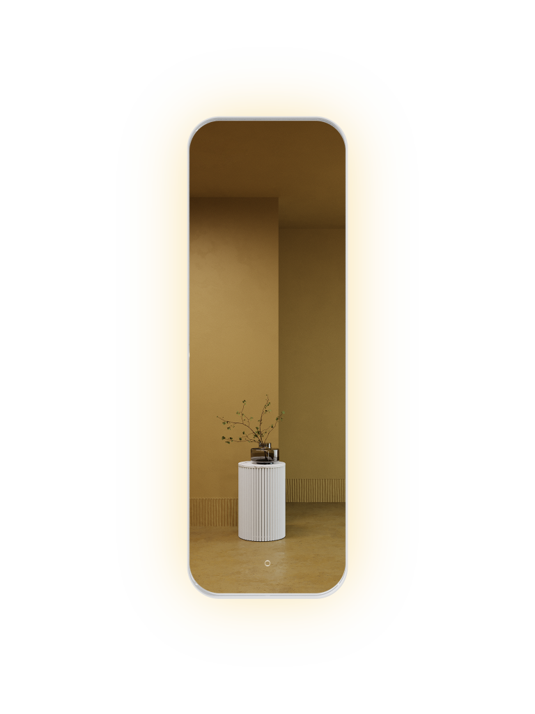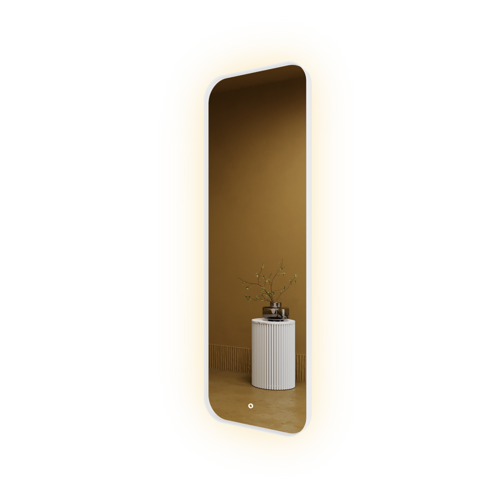 Эффектное настенное зеркало с подсветкой 3 в 1, KUVINO M LED с сенсорной кнопкой в тонкой металлической раме с закруглёнными углами можно с уверенностью назвать универсальным. Оно имеет прямоугольную форму и подходит как к классическим интерьерам, так и к современным. Крупный формат делает это зеркало функциональным с возможным размещением в помещениях различного назначения: спальне, ванной, гостиной, коридоре. Рама выполнена из высокопрочного металла. На тыльной стороне рамы присутствует металлическая полоса с крепежными элементами. Cветодиодная лента защищена матовым свето-рассеивателем от попадания пыли и влаги и закреплена на полосе из металла. Подсветка 3 в 1 позволяет регулировать температуру и яркость света. Меняйте цвет одним касанием, а яркость — удержанием кнопки. Все выбранные вами настройки зеркало сохранит автоматически.