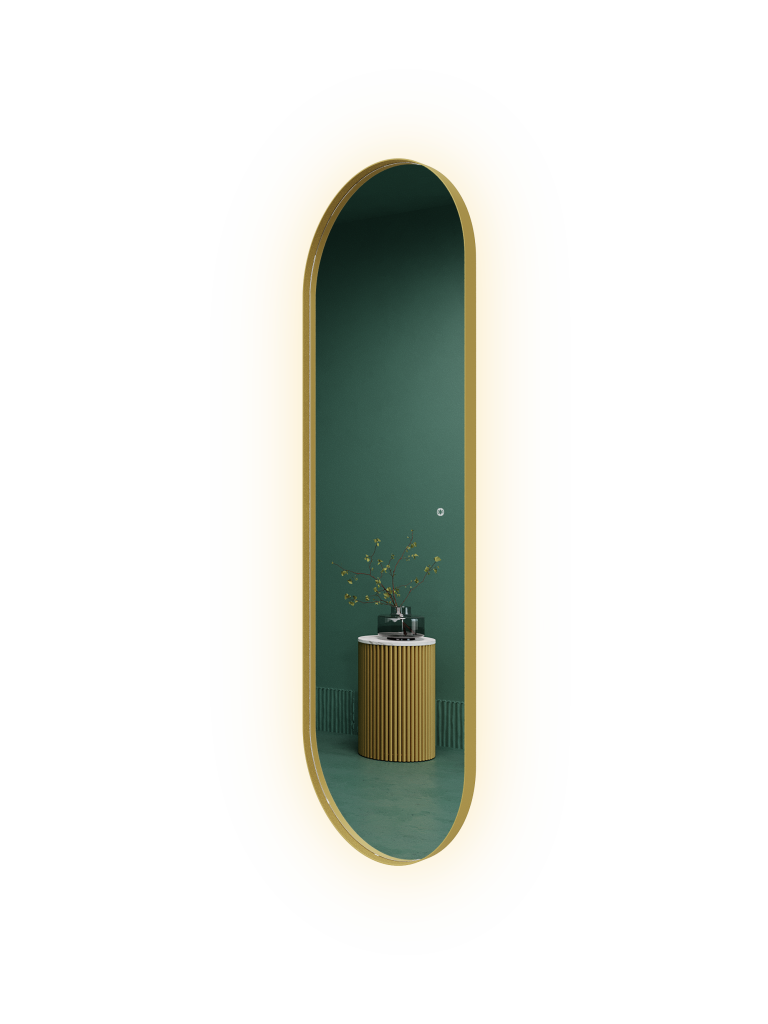 Дизайнерское настенное зеркало овальной формы в металлической раме с подсветкой 3 в 1, NOLVIS L LED с сенсорной кнопкой. Элегантная классическая форма и сбалансированные размеры позволяют использовать это зеркало в любых помещениях загородного дома или квартиры. Оно способно преобразовывать пространство, заливая его светом и расширяя границы. Толщина зеркального полотна 0.4 см. Сечение профиля рамы 0.4*4 см, тонкая рама. Выступ рамы 1.5 см. На тыльной стороне рамы присутствует металлическая полоса с крепежными элементами. Cветодиодная лента защищена матовым свето-рассеивателем от попадания пыли и влаги и закреплена на полосе из металла. Подсветка 3 в 1 позволяет регулировать температуру и яркость света. Меняйте цвет одним касанием, а яркость — удержанием кнопки. Все выбранные вами настройки зеркало сохранит автоматически.