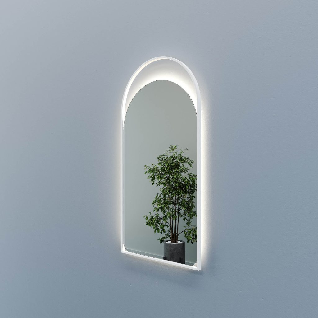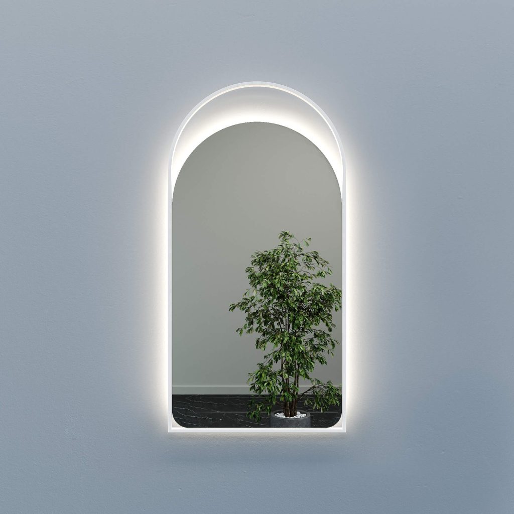 - Зеркало в белой раме с нейтральной подсветкой ARKELO LED, 102 x 52 см