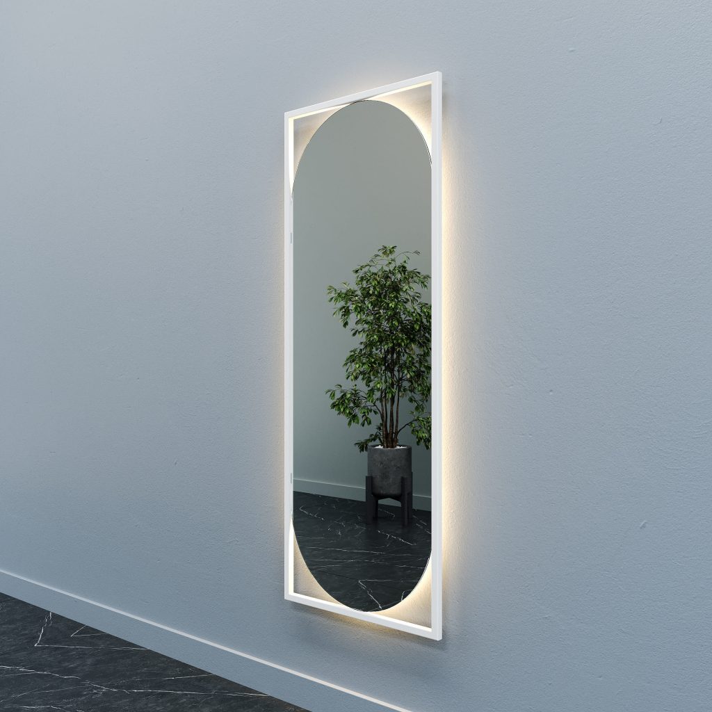 - Зеркало в белой раме с теплой подсветкой, KVADEN M LED, 139 х 54 см