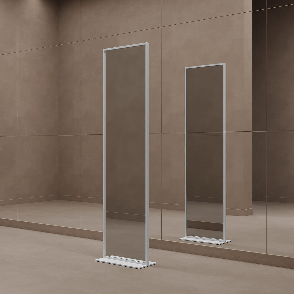 Зеркало во весь рост ZELISO в прямоугольной раме на ножке – это элегантное и практичное решение для дома или коммерческого пространства. Его лаконичный дизайн с эффектом утопленного зеркала придает интерьеру изысканность и визуальную глубину. Благодаря универсальной стилистике зеркало органично впишется в прихожую, спальню или гостиную, а также станет функциональным элементом в магазинах, салонах и шоурумах, заменяя сразу несколько зеркал.