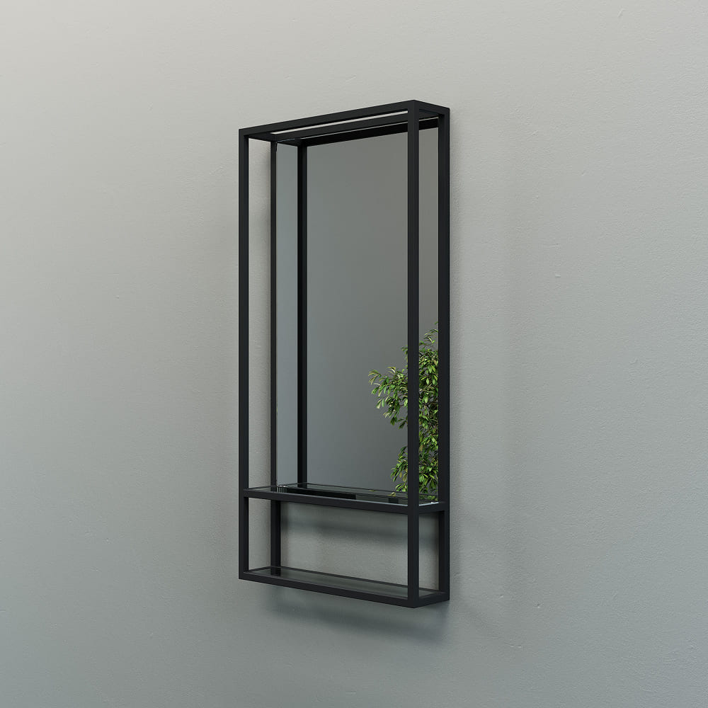 Зеркало в раме прямоугольной формы со стеклянными полочками — это идеальное дополнение для вашего интерьера. Добавьте изысканности вашему интерьеру с этим прямоугольным настенным зеркалом. Его уникальная, вручную изготовленная металлическая рама подчеркнет стиль помещения, а стеклянные полочки добавят функциональности. Рама покрыта двойным слоем порошковой краски для дополнительной защиты от коррозии и механических повреждений. Эта технология, помимо повышения износостойкости, обеспечивает равномерность и гладкость покрытия, предотвращая сколы и царапины. Зеркало размером 105×53 см легко крепится к стене благодаря предусмотренным на тыльной стороне креплениям и входящим в комплект саморезам. Габариты позволяют использовать его как в просторных помещениях, так и в более компактных, визуально расширяя пространство и добавляя света.