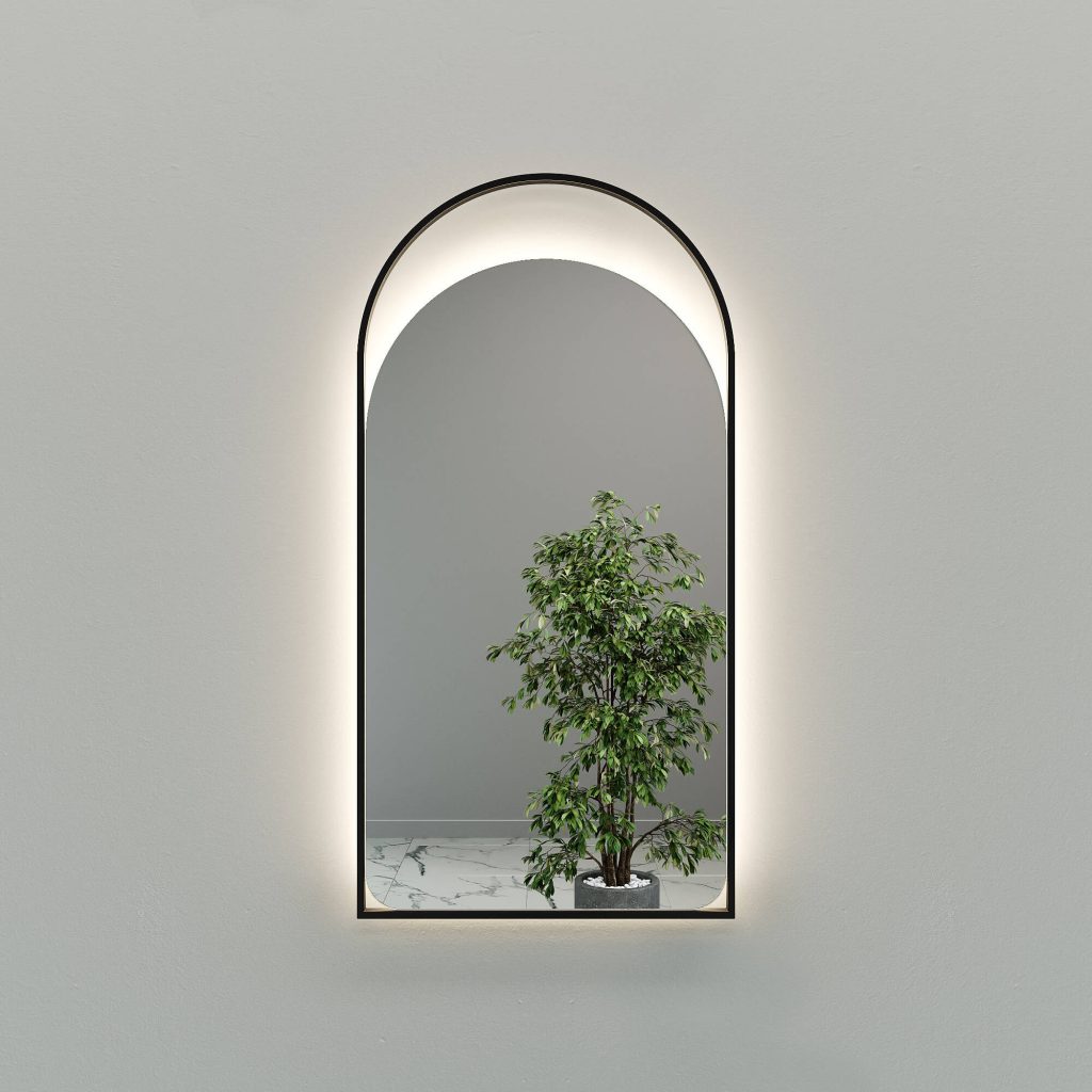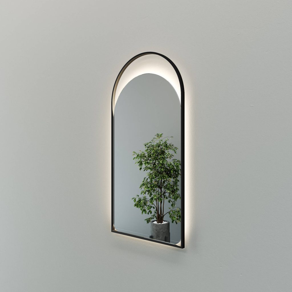 Настенное зеркало-арка ARKELO в дизайнерской металлической раме ручной работы, с контурной (тыльной) подсветкой. Зеркало в раме арочной формы прекрасно впишется как в любой интерьер и комнату, вне зависимости от назначения.