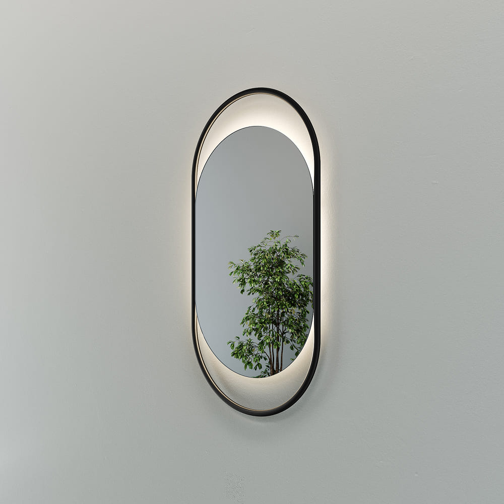 Рамное зеркало с контурной подсветкой выполнено из высококачественного металла с влагостойкой порошковой окраской, что делает его подходящим для помещений с повышенной влажностью. Полотно зеркала не тонировано, что позволяет ему отражать максимальное количество света и создавать пространственный эффект. Вывод для включения с напряжением 220 вольт, мощность блока питания подсветки 12 ватт.