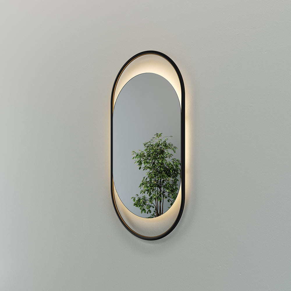 Рамное зеркало с контурной подсветкой выполнено из высококачественного металла с влагостойкой порошковой окраской, что делает его подходящим для помещений с повышенной влажностью. Полотно зеркала не тонировано, что позволяет ему отражать максимальное количество света и создавать пространственный эффект. Вывод для включения с напряжением 220 вольт, мощность блока питания подсветки 12 ватт.
