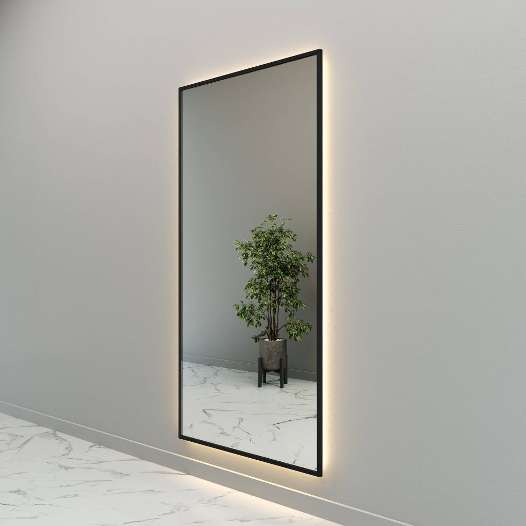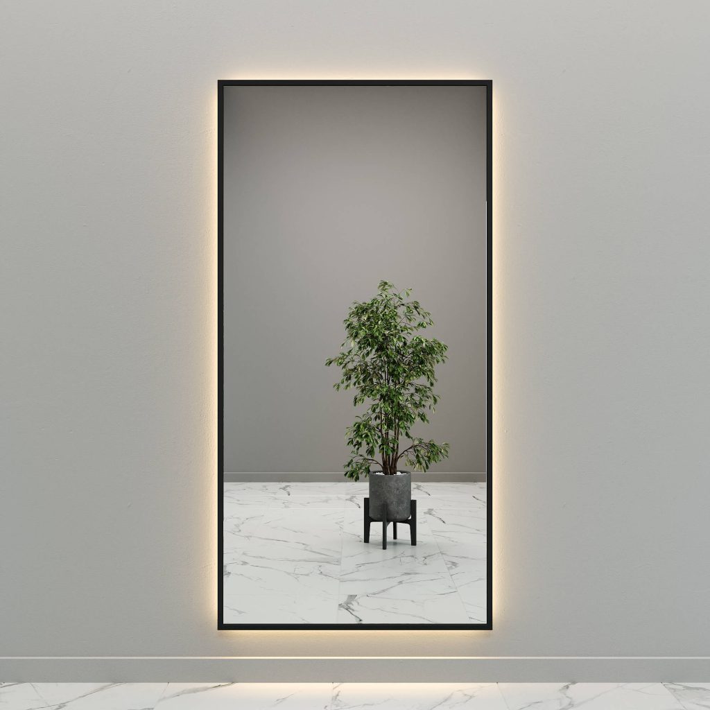 Зеркало в черной раме с теплой подсветкой HALFEO XL LED, 200 x 100 см