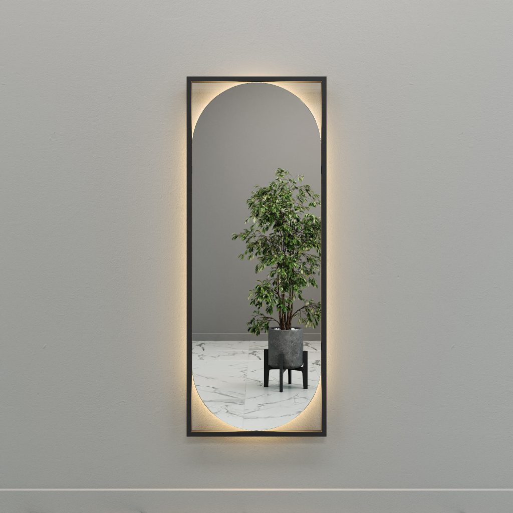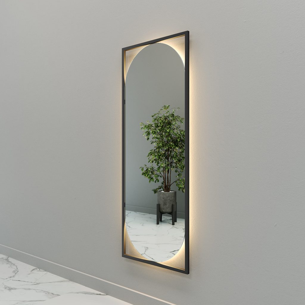 Зеркало в черной раме с теплой подсветкой, KVADEN M LED, 139 х 54 см