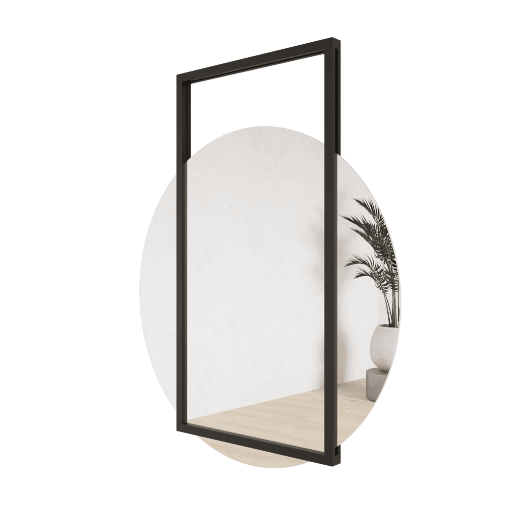 - Металлическая рама: Рама зеркала выполнена из высококачественного металла, с двойным профилем размером 1.5*1.5 см. Рама обладает прочностью и элегантностью, подчеркивая уникальность зеркала и его дизайнерский стиль.