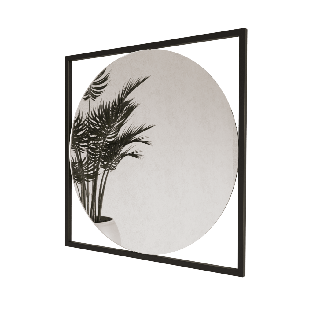• Металлическая рама: Рама зеркала выполнена из высококачественного металла, размер профиля 2*2 см. Рама обладает прочностью и элегантностью, подчеркивая уникальность зеркала и его дизайнерский стиль.